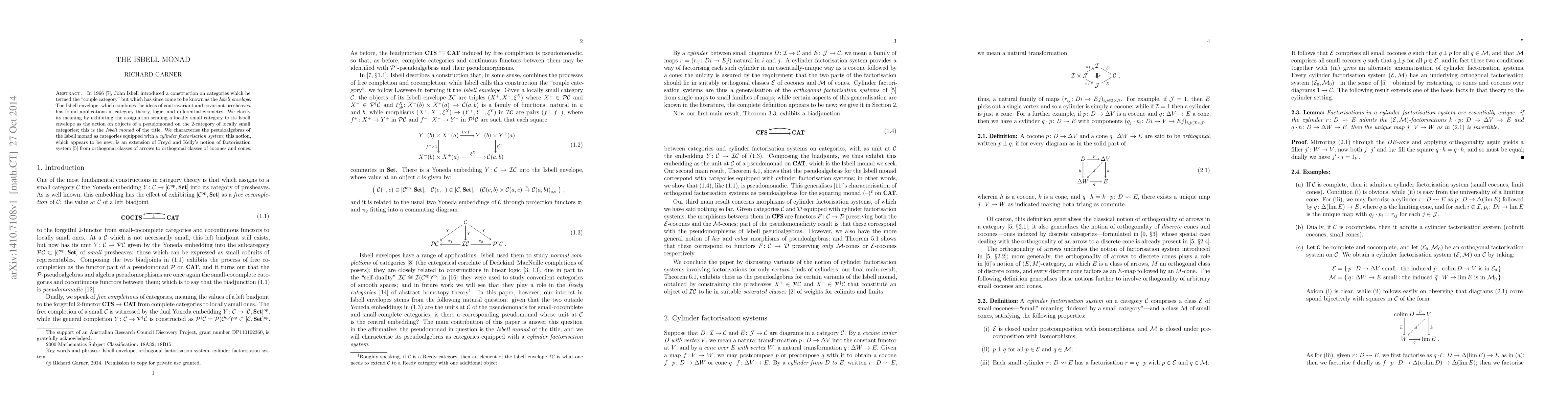 The paper clarifies the Isbell envelope as the action of a pseudomonad on the 2-category of locally small categories, termed the Isbell monad, and characterizes its pseudoalgebras as categories with a cylinder factorisation system, extending Freyd and Kelly's notion of factorisation systems.