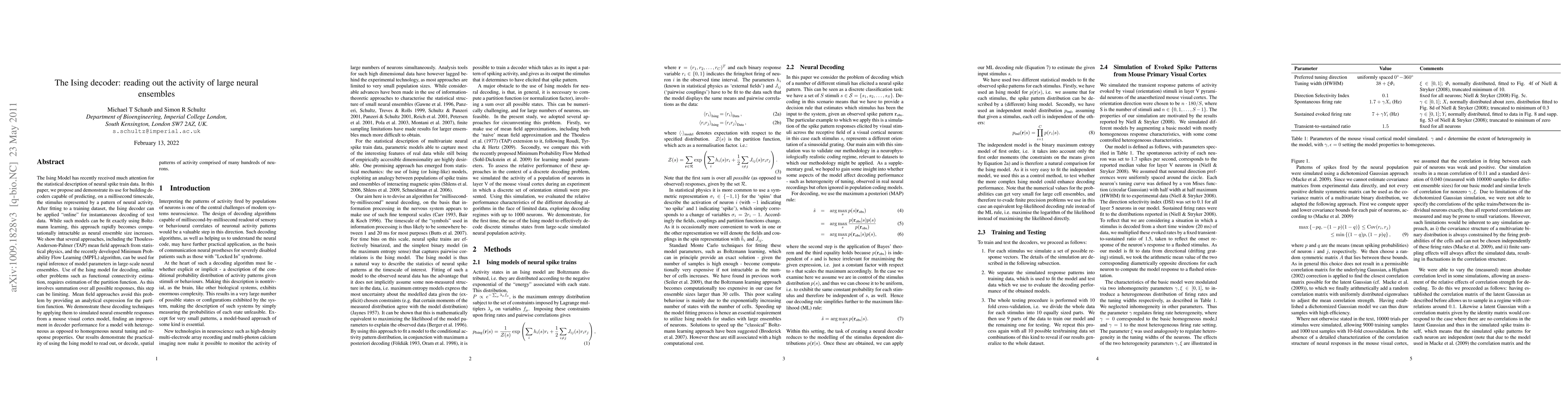 This paper proposes the Ising decoder for predicting neural activity patterns on a millisecond scale, demonstrating its application using the Thouless-Anderson-Palmer mean field approach and Minimum Probability Flow Learning for parameter inference. The study shows improved decoding performance in heterogeneous neural ensembles, highlighting the Ising model's effectiveness for large-scale neural decoding.