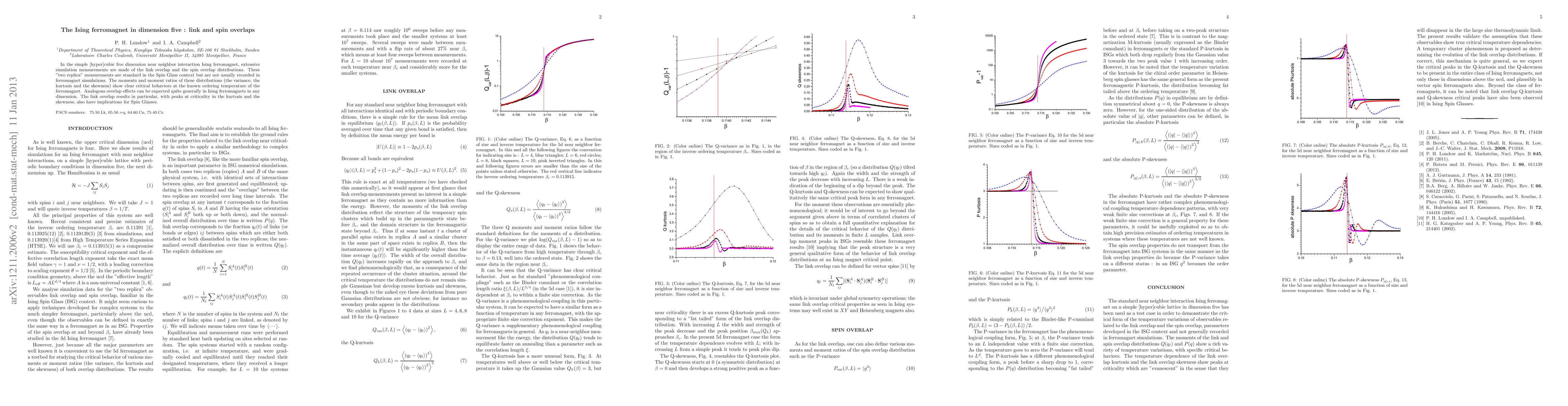 This paper investigates the link and spin overlap distributions in a five-dimensional Ising ferromagnet, revealing critical behaviors at the ordering temperature through moments and moment ratios. The study's findings suggest analogous overlap effects in Ising ferromagnets across dimensions and implications for Spin Glass theory.