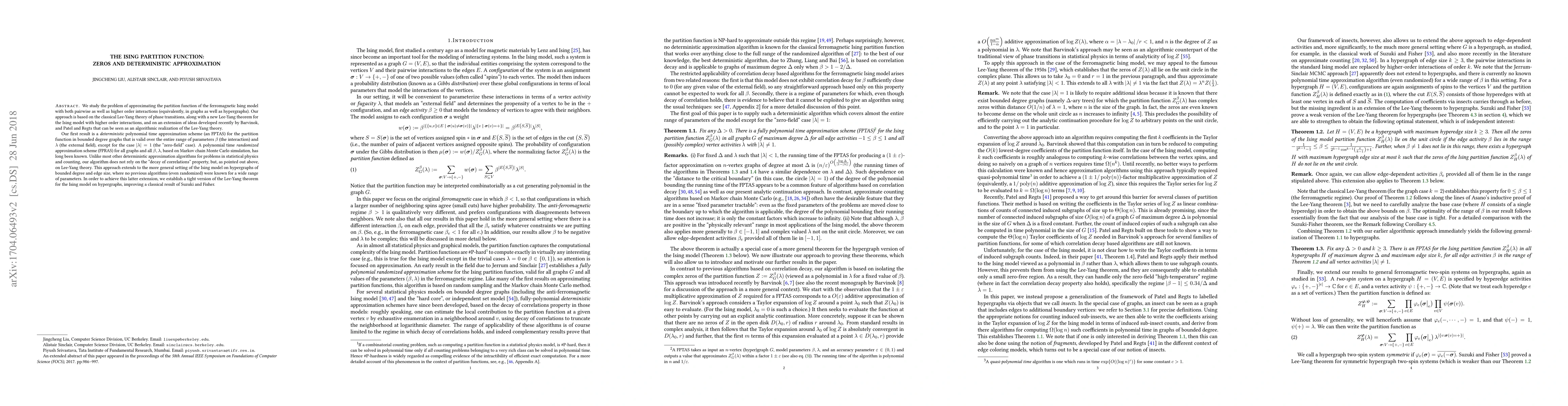 This paper presents a deterministic approximation scheme (FPTAS) for the Ising model partition function in bounded degree graphs and hypergraphs, leveraging the zeros of the partition function rather than correlation decay. It extends to previously unapproachable parameter ranges and introduces a tight Lee-Yang theorem for hypergraphs.