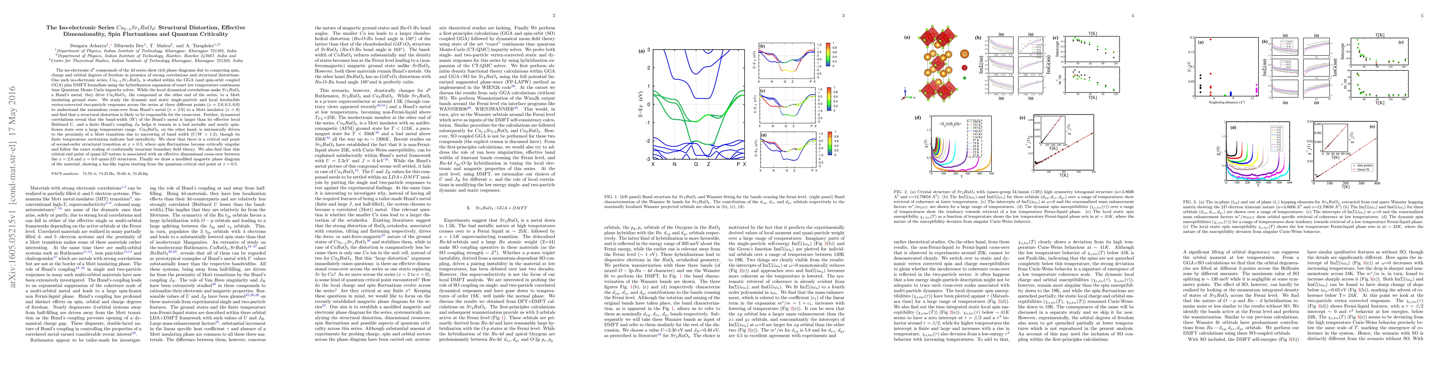 This paper explores the iso-electronic series $Ca_{2-x}Sr_{x}RuO_{4}$, revealing how structural distortions and effective dimensionality influence the transition from Hund's metal to a Mott insulator. The study identifies a critical end point at $x = 0.5$ where spin fluctuations exhibit singular behavior and correlates the dimensional crossover with a modified magnetic phase diagram.