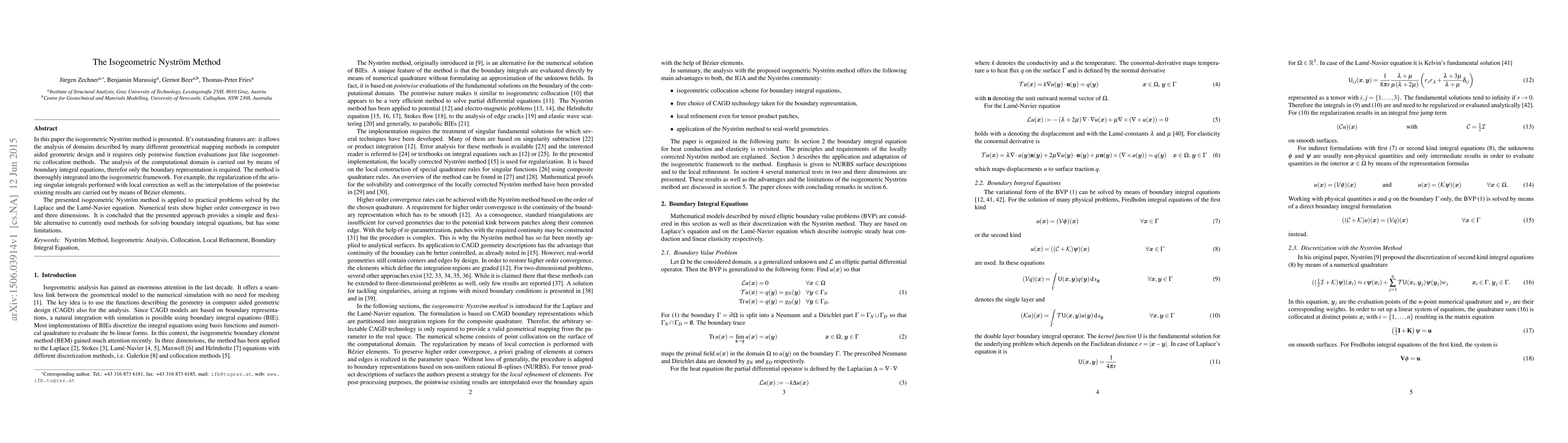 The isogeometric Nyström method integrates seamlessly into the isogeometric framework, allowing analysis of complex domains using boundary integral equations with only pointwise function evaluations. Applied to Laplace and Lame-Navier equations, it demonstrates higher-order convergence but has some limitations.