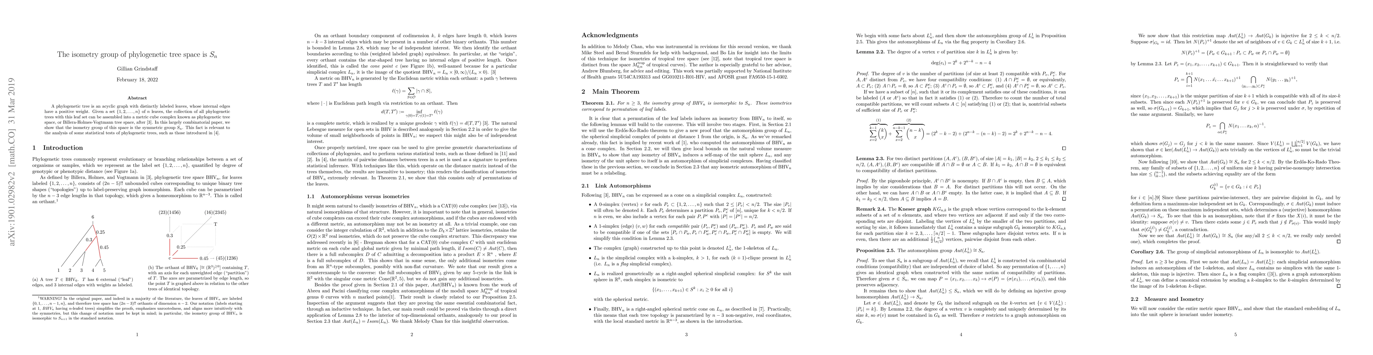 This paper demonstrates that the isometry group of phylogenetic tree space, a metric cube complex representing all possible phylogenetic trees for a given set of n labeled leaves, is isomorphic to the symmetric group $S_n$. This finding has implications for distance-based analyses of phylogenetic tree sets.