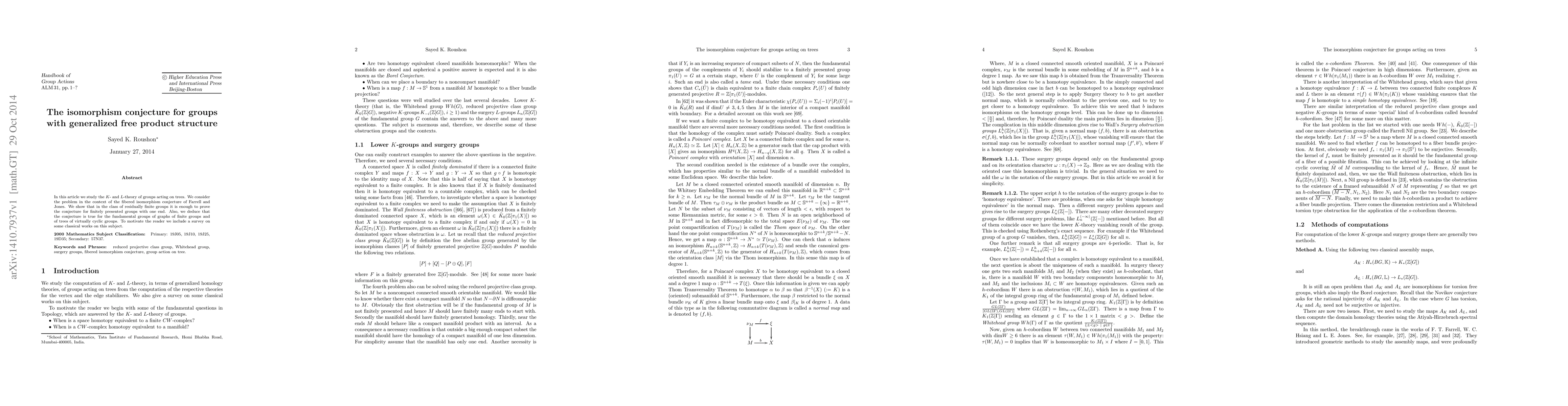 In this article we study the K- and L-theory of groups acting on trees. We consider the problem in the context of the fibered isomorphism conjecture of Farrell and Jones. We show that in the class of residually finite groups it is enough to prove the conjecture for finitely presented groups with one end. Also, we deduce that the conjecture is true for the fundamental groups of graphs of finite groups and of trees of virtually cyclic groups. To motivate the reader we include a survey on some classical works on this subject.