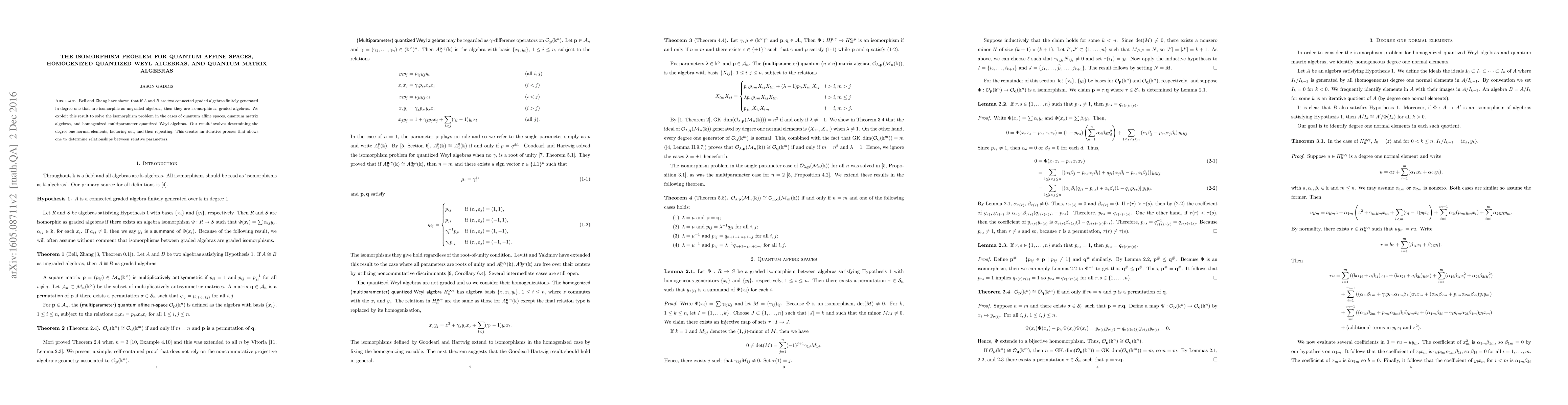 Bell and Zhang have shown that if $A$ and $B$ are two connected graded algebras finitely generated in degree one that are isomorphic as ungraded algebras, then they are isomorphic as graded algebras. We exploit this result to solve the isomorphism problem in the cases of quantum affine spaces, quantum matrix algebras, and homogenized multiparameter quantized Weyl algebras. Our result involves determining the degree one normal elements, factoring out, and then repeating. This creates an iterative process that allows one to determine relationships between relative parameters.