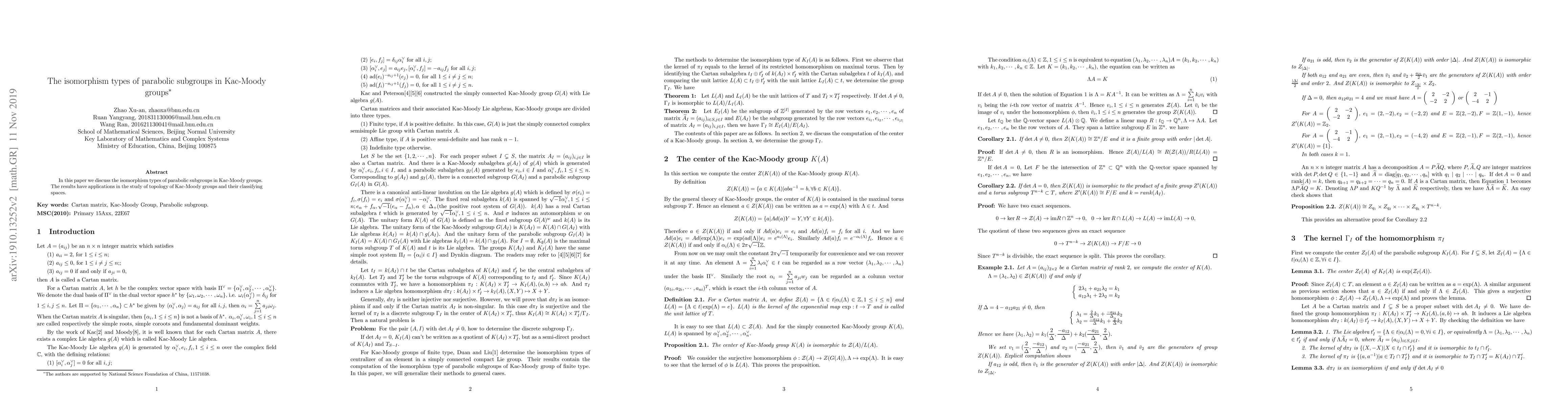 This paper investigates the isomorphism types of parabolic subgroups within Kac-Moody groups, providing insights that enhance the understanding of the topology and classifying spaces of these groups. The findings contribute to a deeper analysis of their structural properties.