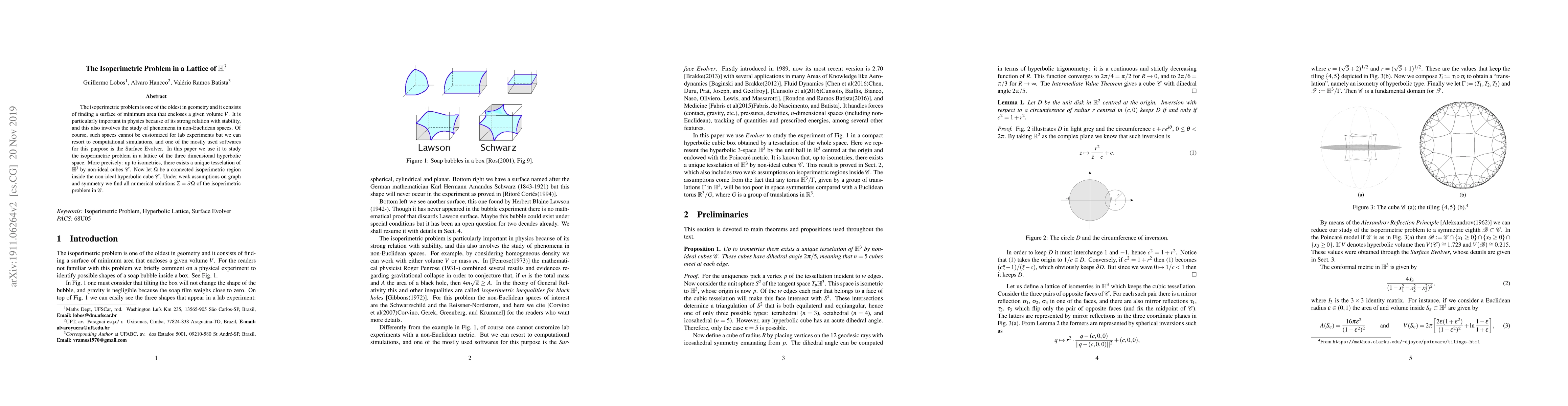 Researchers used computational simulations to find the minimum surface area enclosing a given volume in three-dimensional hyperbolic space, revealing unique solutions for isoperimetric regions inside non-ideal cubes.