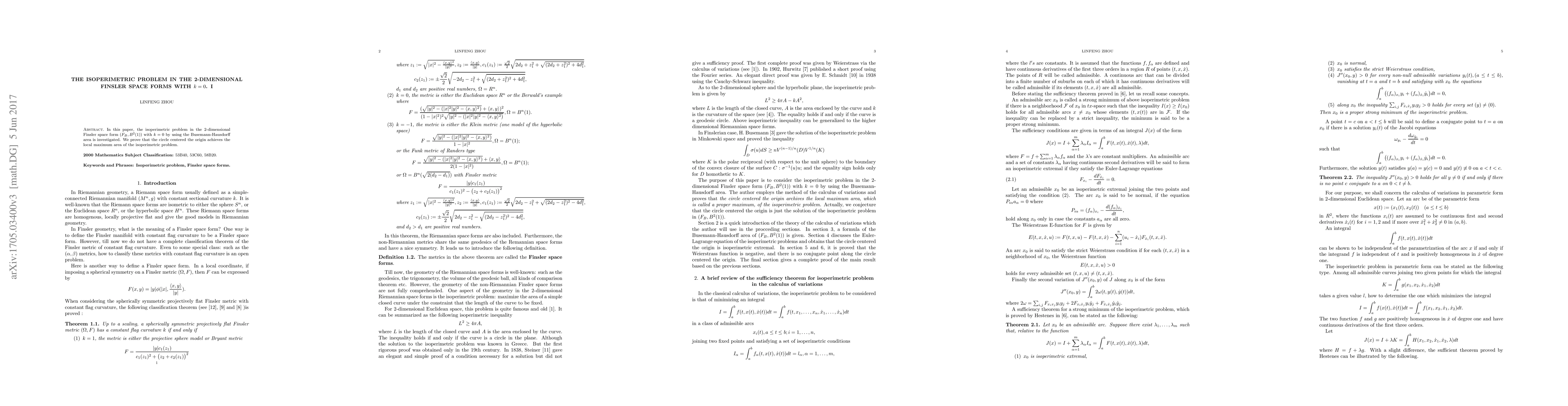 In this paper, the isoperimetric problem in the 2-dimensional Finsler space form $(F_B,B^2(1))$ with k = 0 by using the Busemann-Hausdorff area is investigated. We prove that the circle centered the origin achieves the local maximum area of the isoperimetric problem.