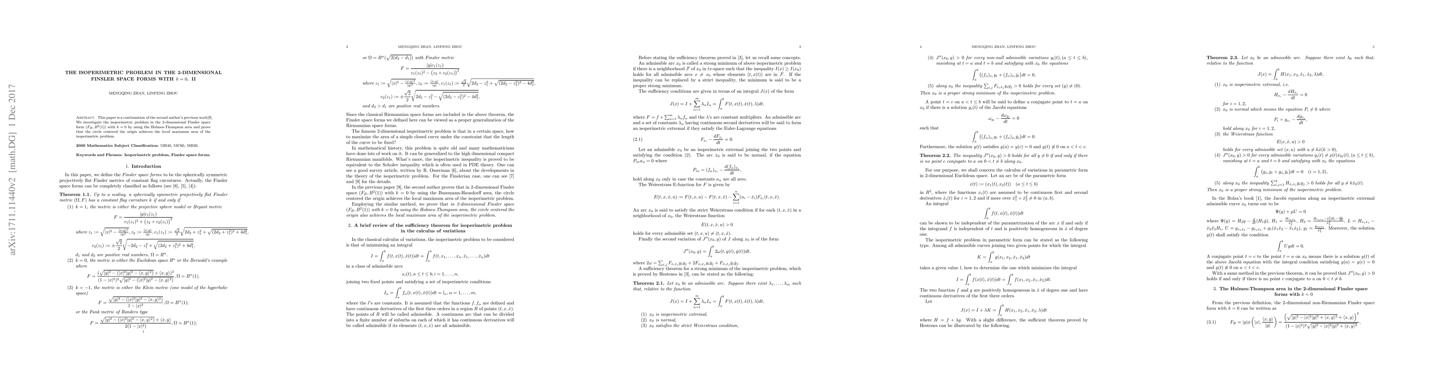 This paper is a continuation of the second author's previous work. We investigate the isoperimetric problem in the 2-dimensional Finsler space form $(F_B, B^2(1))$ with $k=0$ by using the Holmes-Thompson area and prove that the circle centered the origin achieves the local maximum area of the isoperimetric problem.