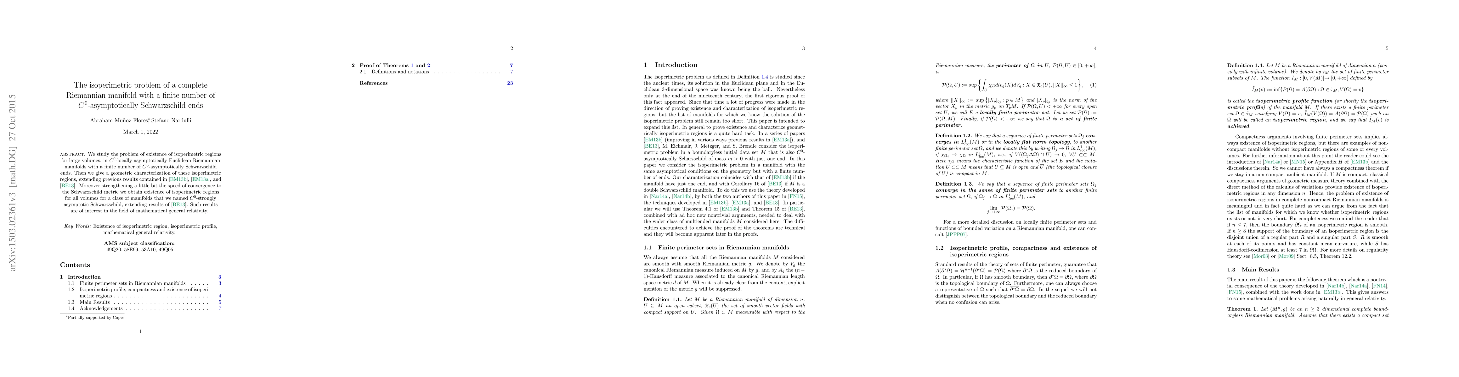 We study the problem of existence of isoperimetric regions for large volumes, in $C^0$-locally asymptotically Euclidean Riemannian manifolds with a finite number of $C^0$-asymptotically Schwarzschild ends. Then we give a geometric characterization of these isoperimetric regions, extending previous results contained in [EM13b], [EM13a], and [BE13]. Moreover strengthening a little bit the speed of convergence to the Schwarzschild metric we obtain existence of isoperimetric regions for all volumes for a class of manifolds that we named $C^0$-strongly asymptotic Schwarzschild, extending results of [BE13]. Such results are of interest in the field of mathematical general relativity.