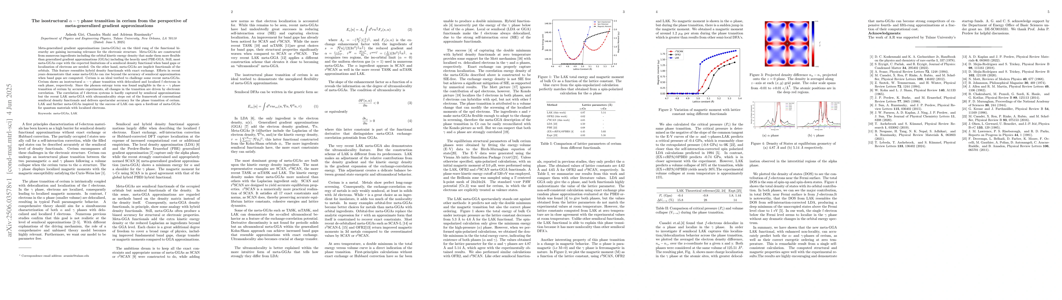 The paper presents the successful application of the LAK meta-GGA in accurately describing the alpha-gamma phase transition in cerium, showcasing its superiority over conventional semilocal density functionals.