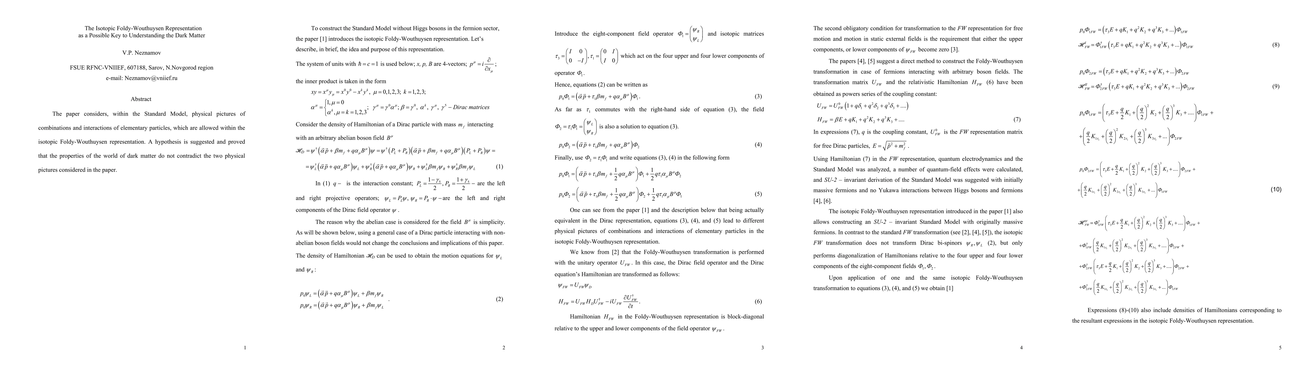 The paper explores the isotopic Foldy-Wouthuysen representation within the Standard Model to understand elementary particle interactions. It proposes and validates a hypothesis that dark matter properties align with these physical pictures.