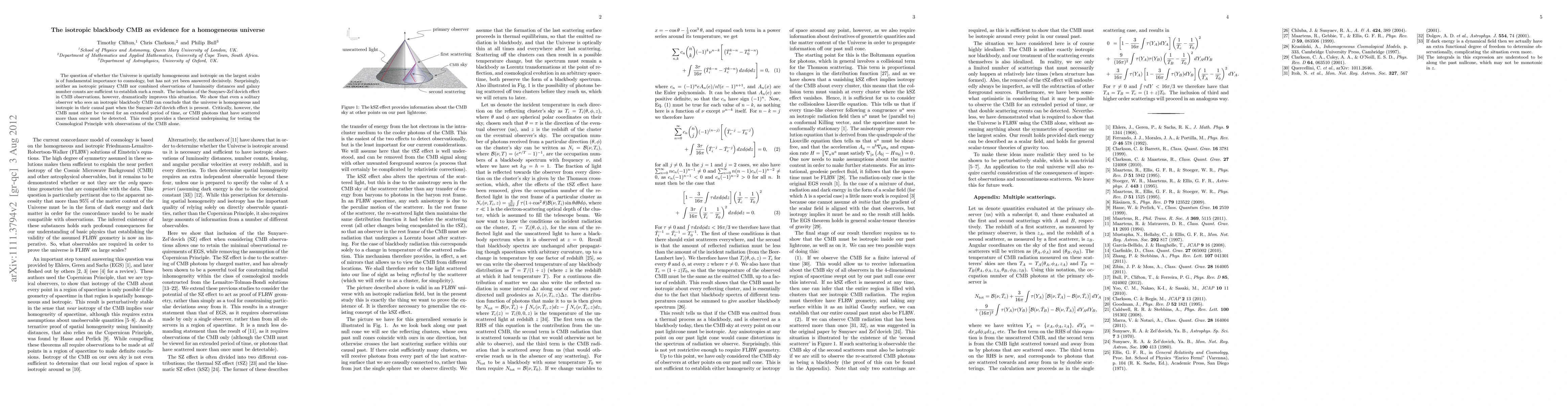 This paper argues that the isotropic blackbody Cosmic Microwave Background (CMB) combined with the Sunyaev-Zel'dovich effect provides strong evidence for a homogeneous and isotropic universe on large scales. It emphasizes that extended observation or detection of multiply scattered CMB photons is crucial for this conclusion.