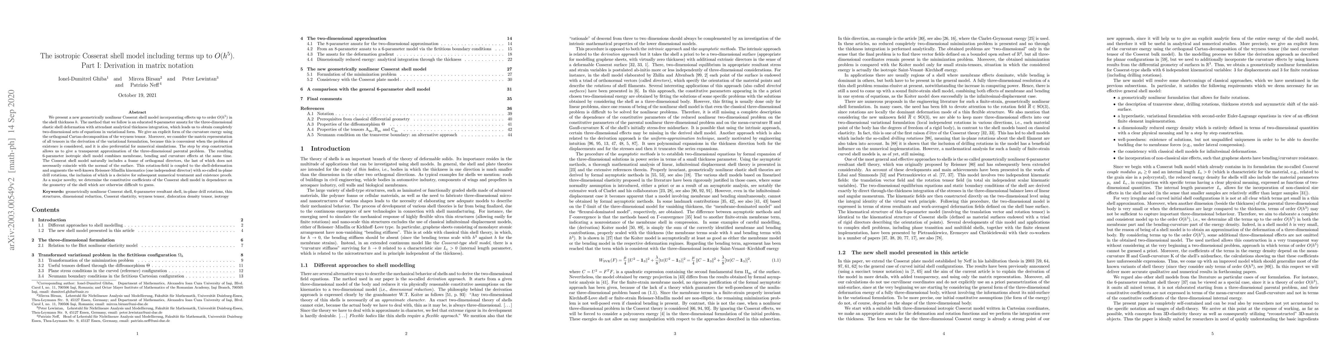 This paper derives a new geometrically nonlinear Cosserat shell model incorporating effects up to $O(h^5)$ in shell thickness, using an 8-parameter ansatz and matrix notation for analytical thickness integration. The model includes membrane, bending, and curvature effects, and introduces in-plane drill rotations for better numerical treatment.