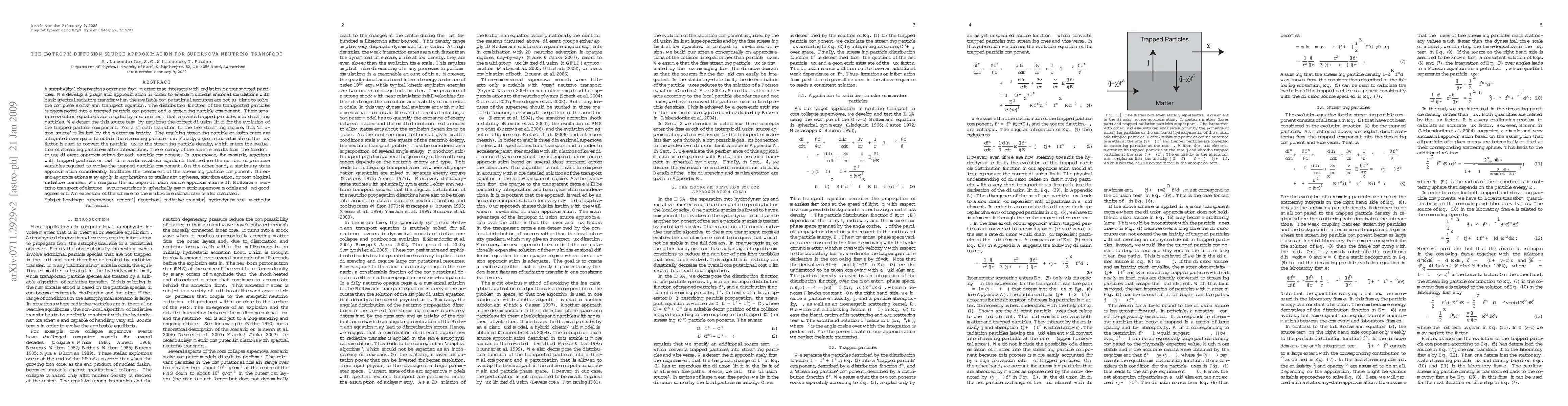 This paper develops an isotropic diffusion source approximation for simulating supernova neutrino transport, enabling multi-dimensional simulations with basic spectral radiative transfer. The method decomposes neutrino transport into trapped and streaming components, coupling them via a diffusion source term, and shows good agreement with full Boltzmann transport simulations.