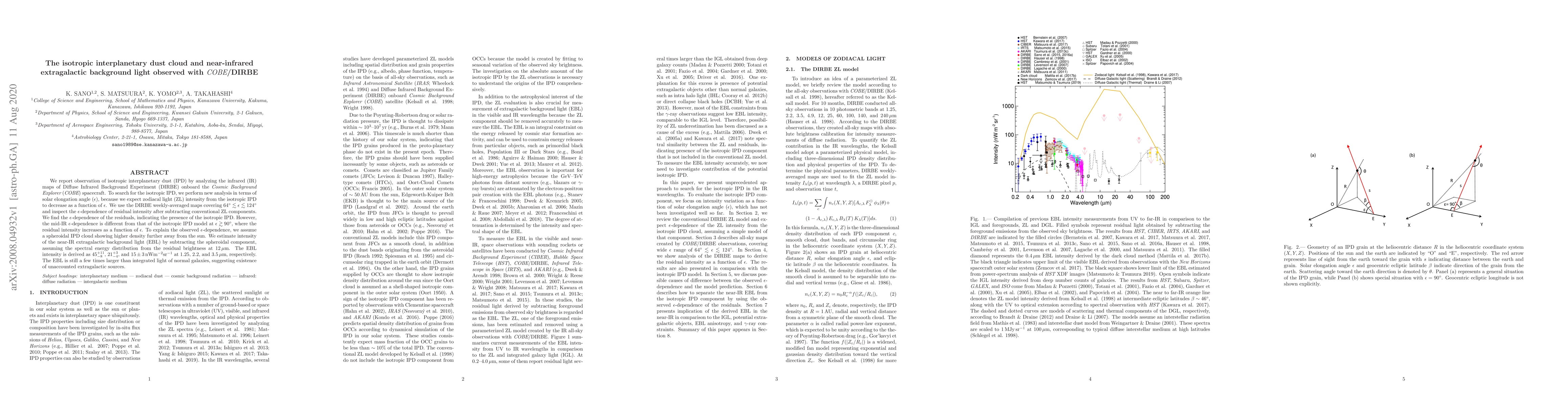 This paper reports the observation of isotropic interplanetary dust using COBE/DIRBE data, finding its $\epsilon$-dependence deviates from models at large angles. The study estimates the near-IR extragalactic background light intensity at $1.25$, $2.2$, and $3.5\,\mu m$, revealing it is still larger than typical galaxy light, indicating additional extragalactic sources.