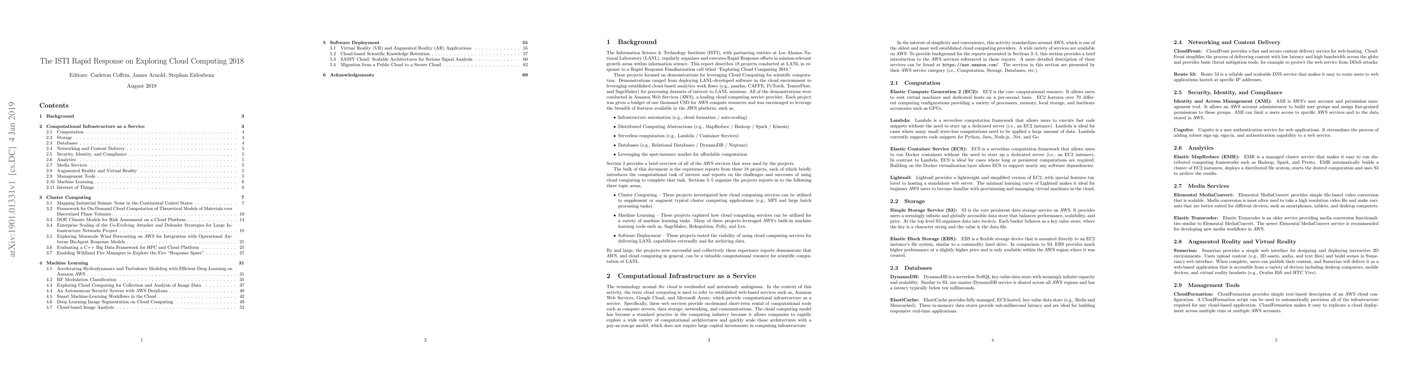 This report details eighteen projects demonstrating the use of commercial cloud computing for scientific computation at national labs, showing successful deployment of proprietary software and cloud-based analytics, which collectively indicate cloud computing's potential value for scientific research.