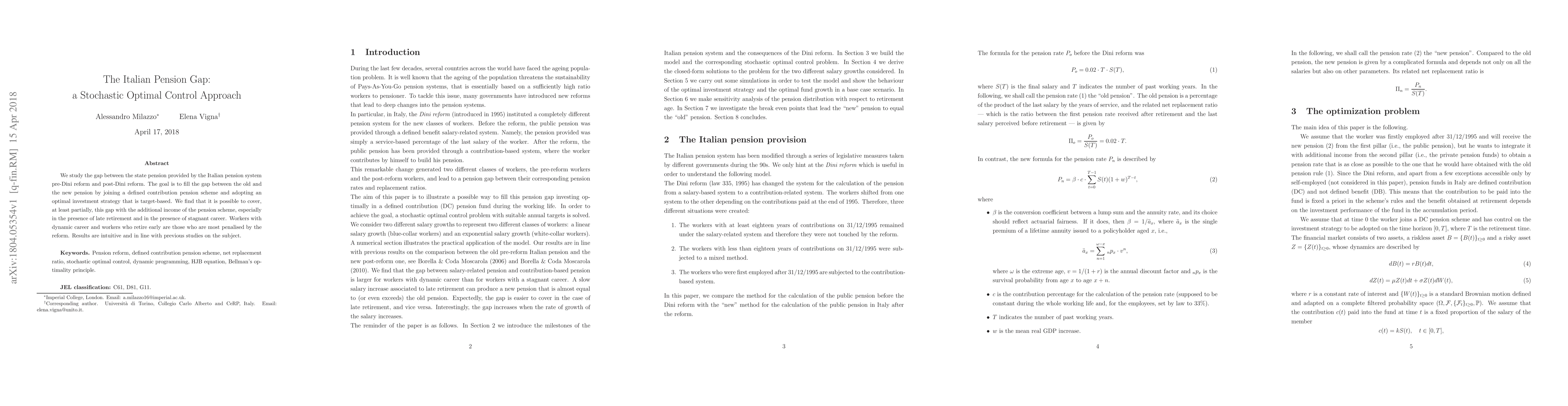 We study the gap between the state pension provided by the Italian pension system pre-Dini reform and post-Dini reform. The goal is to fill the gap between the old and the new pension by joining a defined contribution pension scheme and adopting an optimal investment strategy that is target-based. We find that it is possible to cover, at least partially, this gap with the additional income of the pension scheme, especially in the presence of late retirement and in the presence of stagnant career. Workers with dynamic career and workers who retire early are those who are most penalised by the reform. Results are intuitive and in line with previous studies on the subject.