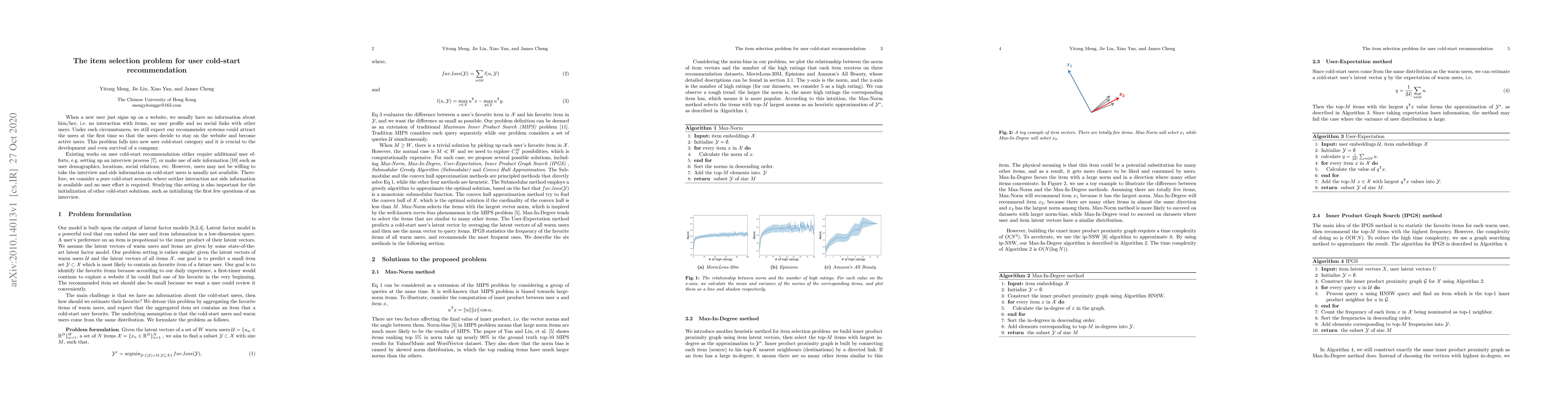 This paper addresses the item selection problem for new users with no prior interaction data, focusing on pure cold-start scenarios without additional user efforts or side information. It aims to develop recommender systems that can attract and retain new users effectively.