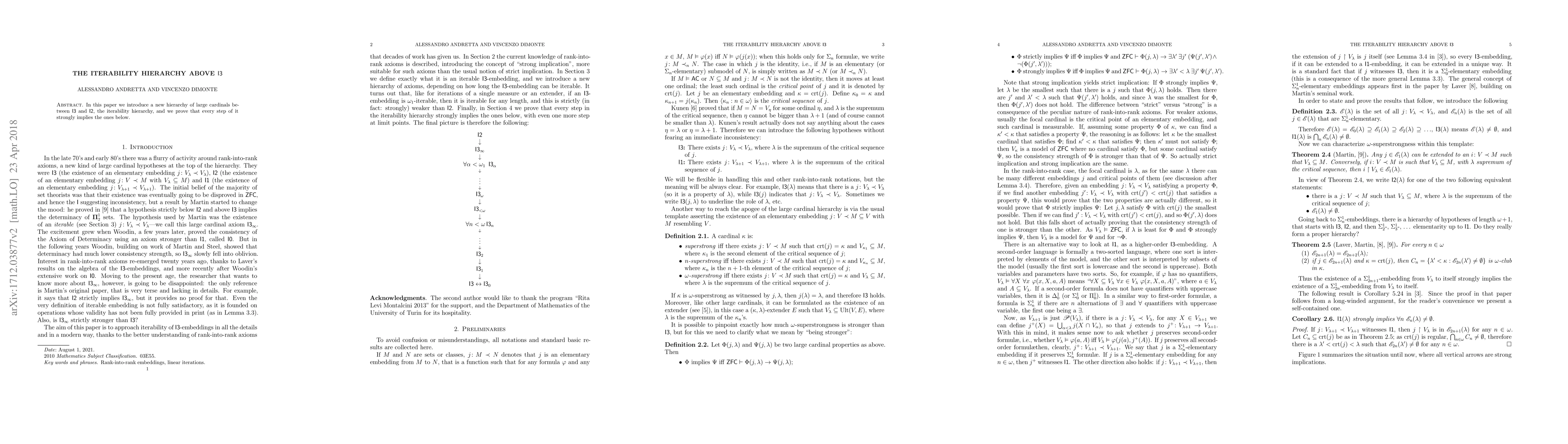Researchers introduce a new hierarchy of large cardinals between I3 and I2, proving that each step strongly implies the ones below.