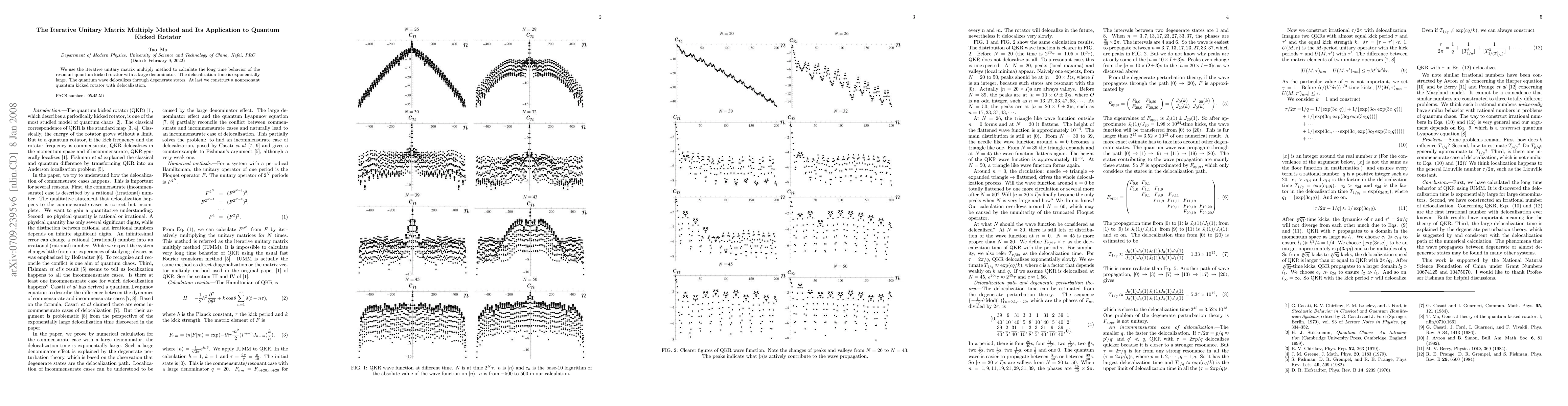 Summary: This paper employs the iterative unitary matrix multiply method to analyze the long-term dynamics of the quantum kicked rotator, revealing exponential delocalization through degenerate states. It also introduces a nonresonant variant of the quantum kicked rotator that exhibits delocalization.