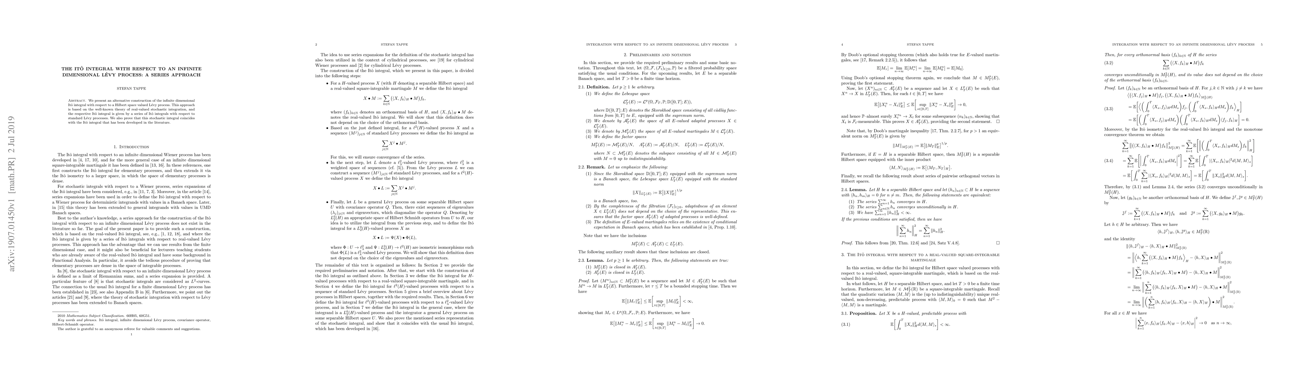 This paper constructs the infinite dimensional Itô integral concerning a Hilbert space valued Lévy process using a series approach based on real-valued stochastic integration, and demonstrates its equivalence to existing literature methods.