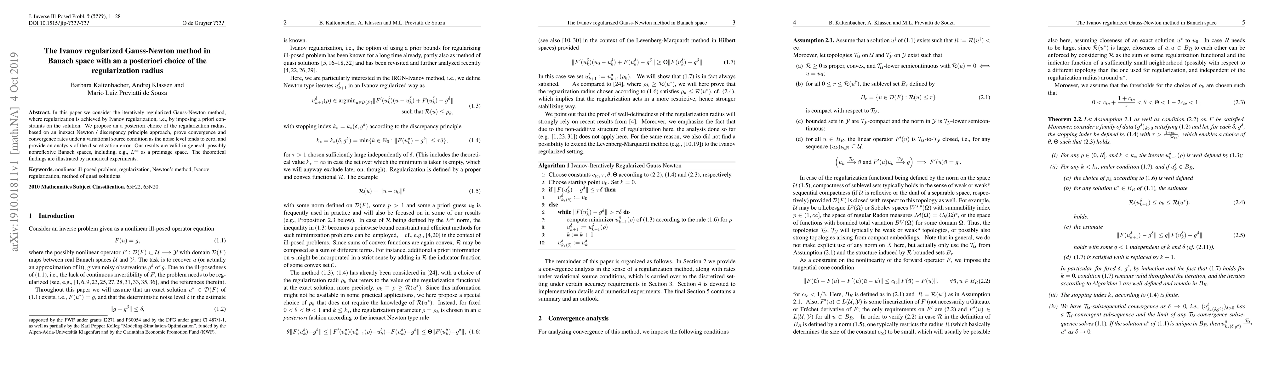 This paper proposes an iteratively regularized Gauss-Newton method using Ivanov regularization with an a posteriori choice of the regularization radius based on an inexact Newton discrepancy principle. The authors prove convergence and convergence rates under a variational source condition and analyze discretization error in Banach spaces, including $L^\infty$.