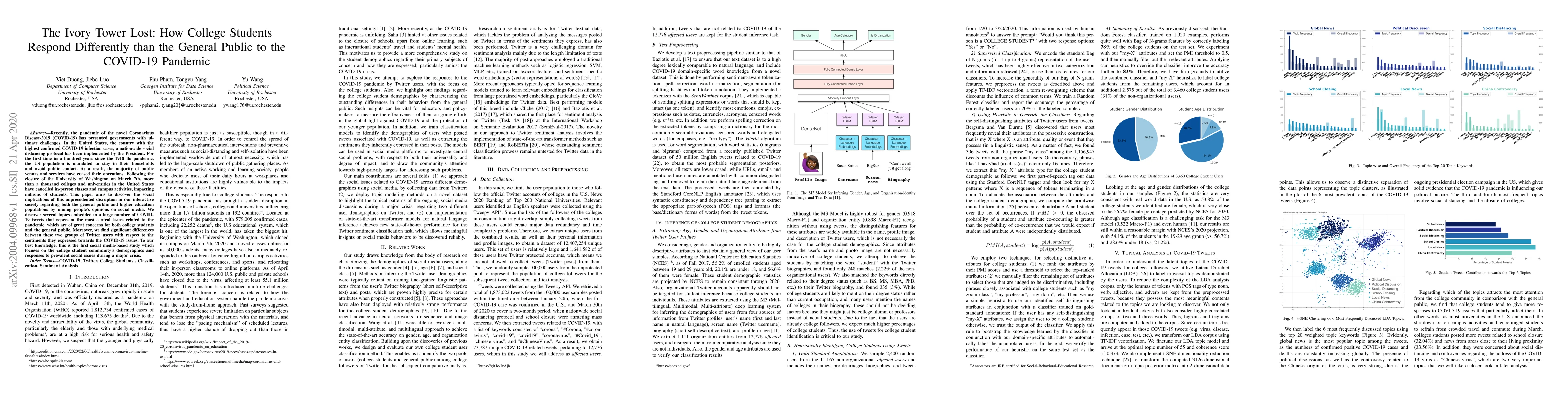 This paper explores how college students in the United States differ in their social media responses to the COVID-19 pandemic compared to the general public. The study finds significant sentiment differences between these groups, highlighting unique concerns and reactions of the college student community during this unprecedented crisis.
