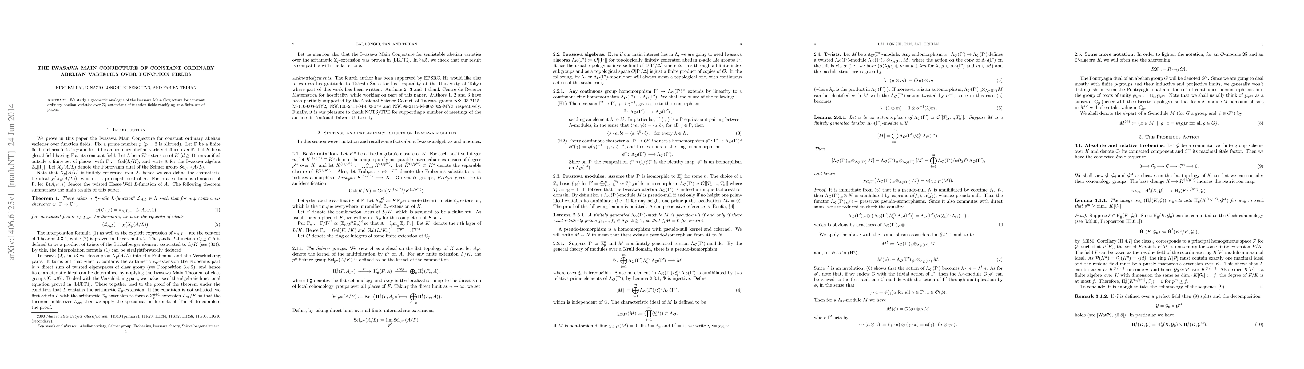 The paper investigates the geometric analogue of the Iwasawa Main Conjecture for constant ordinary abelian varieties over $\ZZ_p^d$-extensions of function fields, focusing on ramification at a finite set of places. This study provides new insights into the structure and properties of these abelian varieties.