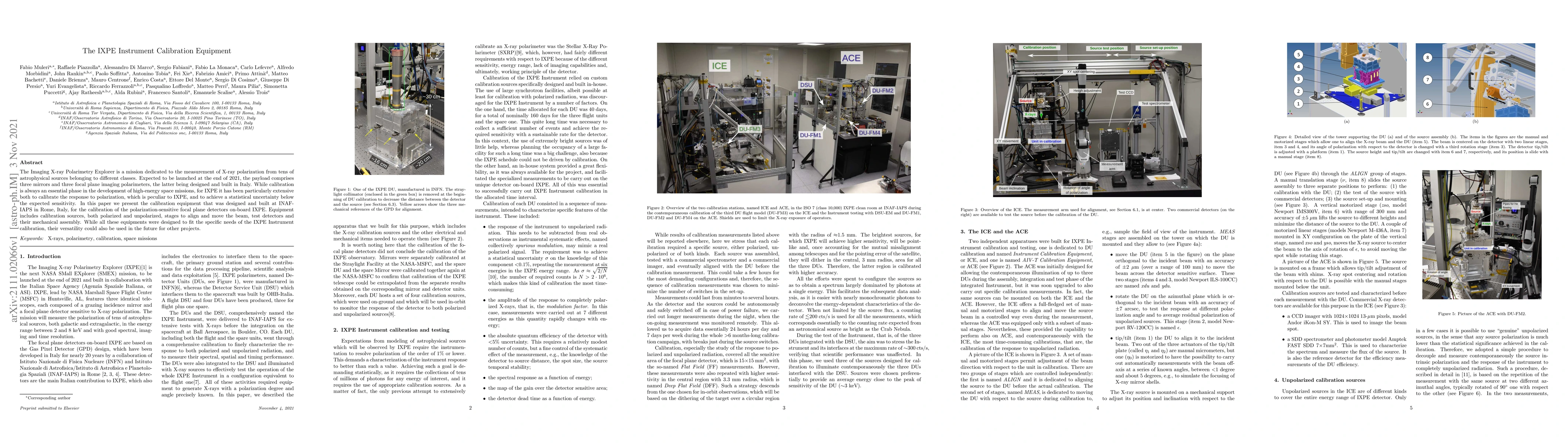 The Imaging X-ray Polarimetry Explorer is a mission dedicated to the measurement of X-ray polarization from tens of astrophysical sources belonging to different classes. Expected to be launched at the end of 2021, the payload comprises three mirrors and three focal plane imaging polarimeters, the latter being designed and built in Italy. While calibration is always an essential phase in the development of high-energy space missions, for IXPE it has been particularly extensive both to calibrate the response to polarization, which is peculiar to IXPE, and to achieve a statistical uncertainty below the expected sensitivity. In this paper we present the calibration equipment that was designed and built at INAF-IAPS in Rome, Italy, for the calibration of the polarization-sensitive focal plane detectors on-board IXPE. Equipment includes calibration sources, both polarized and unpolarized, stages to align and move the beam, test detectors and their mechanical assembly. While all these equipments were designed to fit the specific needs of the IXPE Instrument calibration, their versatility could also be used in the future for other projects.