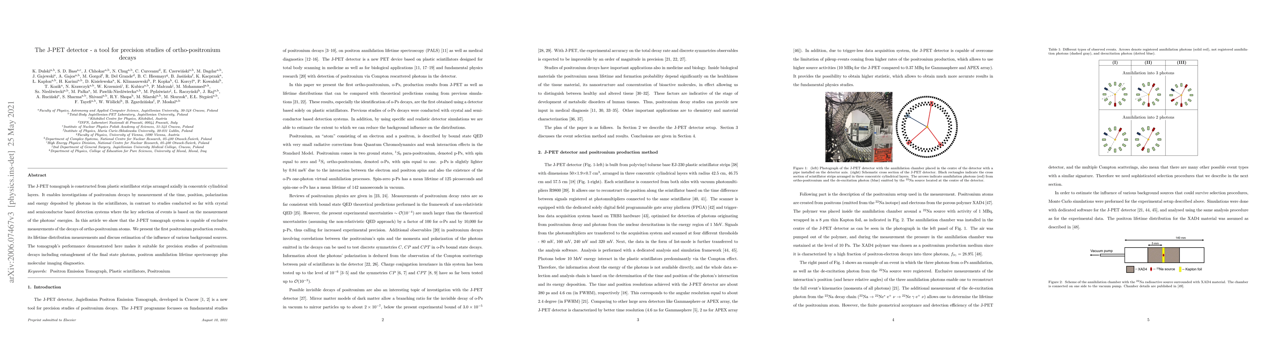 The J-PET tomograph, constructed from plastic scintillator strips, enables precise measurements of ortho-positronium decays by tracking time, position, polarization, and energy. This system offers superior capabilities for studying positronium decays compared to traditional crystal and semiconductor detectors.