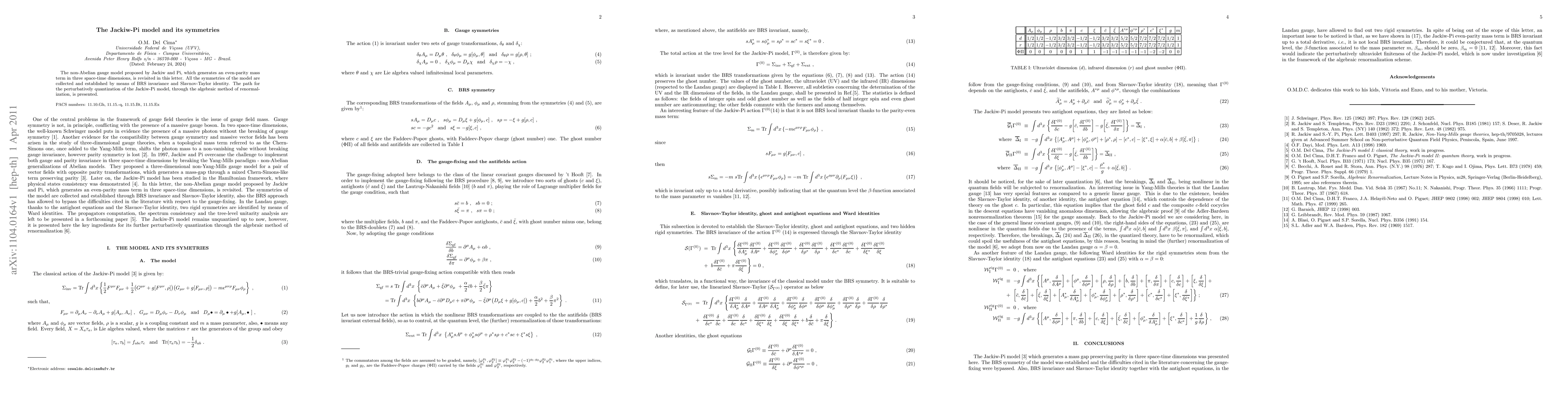 The non-Abelian gauge model proposed by Jackiw and Pi, which generates an even-parity mass term in three space-time dimensions, is revisited in this letter. All the symmetries of the model are collected and established by means of BRS invariance and Slavnov-Taylor identity. The path for the perturbatively quantization of the Jackiw-Pi model, through the algebraic method of renormalization, is presented.