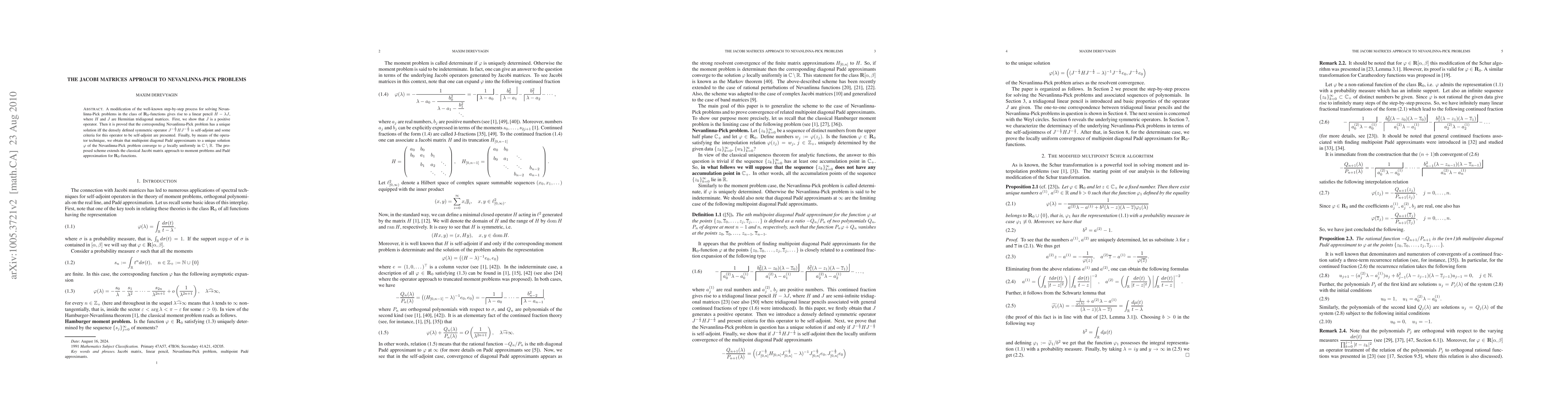 A modification of the well-known step-by-step process for solving Nevanlinna-Pick problems in the class of $\bR_0$-functions gives rise to a linear pencil $H-\lambda J$, where $H$ and $J$ are Hermitian tridiagonal matrices. First, we show that $J$ is a positive operator. Then it is proved that the corresponding Nevanlinna-Pick problem has a unique solution iff the densely defined symmetric operator $J^{-1/2}HJ^{-1/2}$ is self-adjoint and some criteria for this operator to be self-adjoint are presented. Finally, by means of the operator technique, we obtain that multipoint diagonal Pad\'e approximants to a unique solution $\varphi$ of the Nevanlinna-Pick problem converge to $\varphi$ locally uniformly in $\dC\setminus\dR$. The proposed scheme extends the classical Jacobi matrix approach to moment problems and Pad\'e approximation for $\bR_0$-functions.