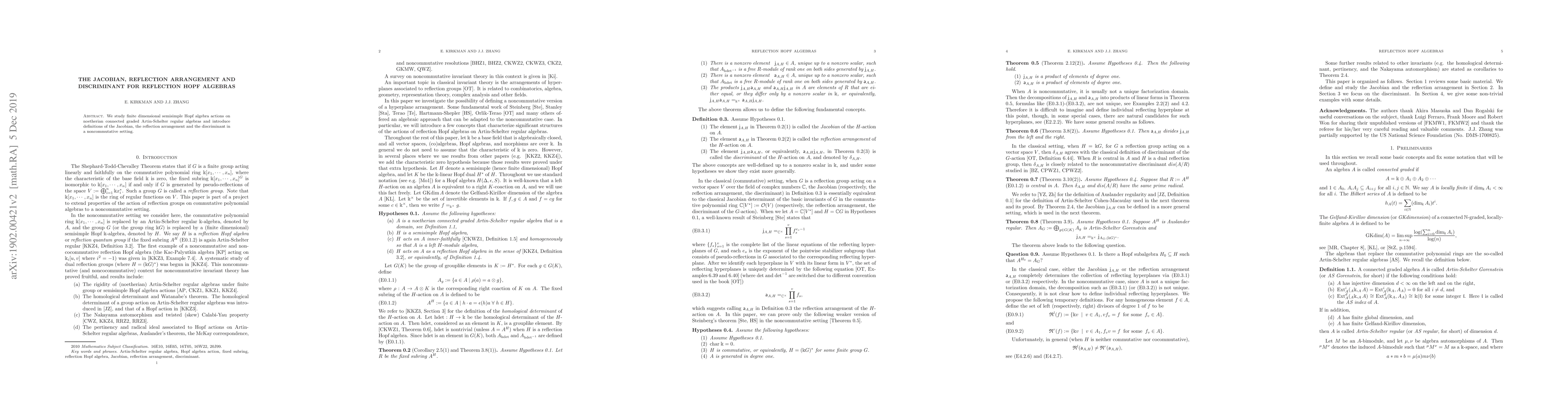 Summary: This paper explores the actions of finite dimensional semisimple Hopf algebras on Artin-Schelter regular algebras, introducing noncommutative definitions for the Jacobian, reflection arrangement, and discriminant.