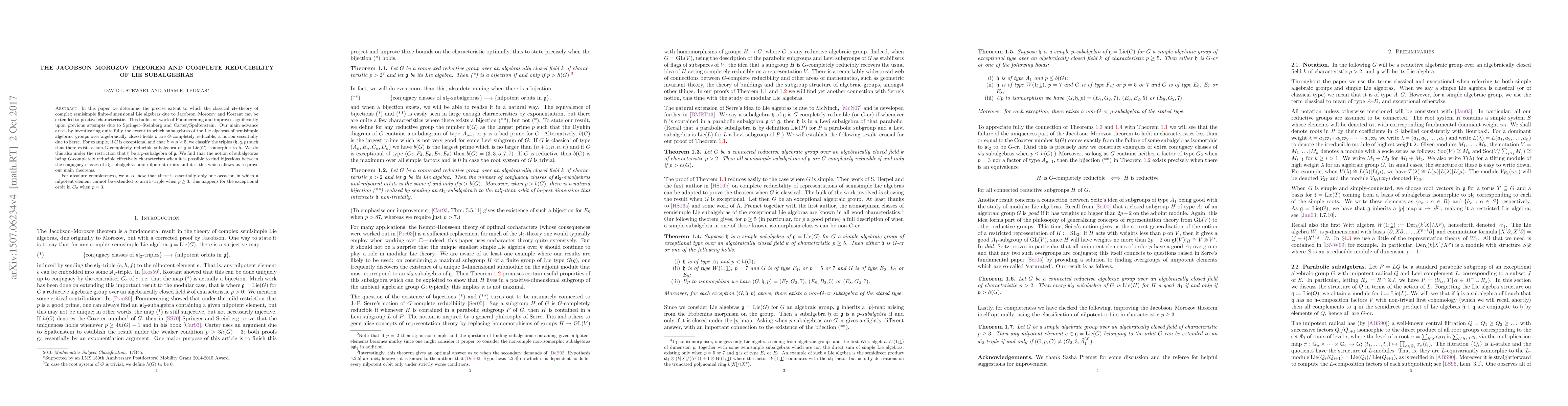 In this paper we determine the precise extent to which the classical sl_2-theory of complex semisimple finite-dimensional Lie algebras due to Jacobson--Morozov and Kostant can be extended to positive characteristic. This builds on work of Pommerening and improves significantly upon previous attempts due to Springer--Steinberg and Carter/Spaltenstein. Our main advance arises by investigating quite fully the extent to which subalgebras of the Lie algebras of semisimple algebraic groups over algebraically closed fields k are G-completely reducible, a notion essentially due to Serre. For example if G is exceptional and char k=p\geq 5, we classify the triples (\h,\g,p) such that there exists a non-G-completely reducible subalgebra of \g isomorphic to \h. We do this also under the restriction that \h be a p-subalgebra of \g. We find that the notion of subalgebras being G-completely reducible effectively characterises when it is possible to find bijections between the conjugacy classes of sl_2-subalgebras and nilpotent orbits and it is this which allows us to prove our main theorems. For absolute completeness, we also show that there is essentially only one occasion in which a nilpotent element cannot be extended to an sl_2-triple when p\geq 3: this happens for the exceptional orbit in G_2 when p=3.