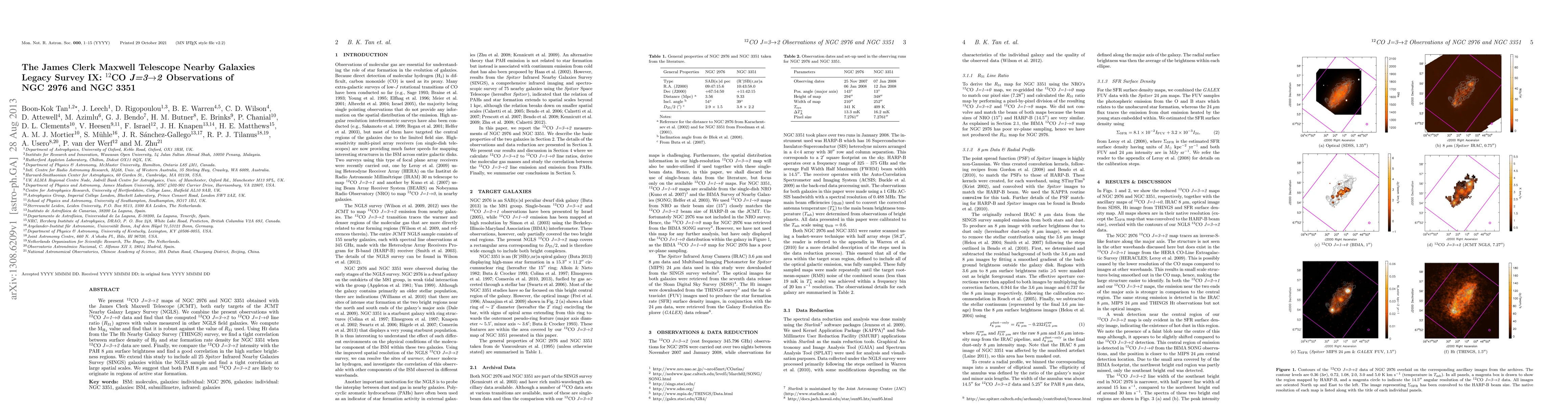We present $^{12}$CO \textit{J=3$\rightarrow$2} maps of NGC 2976 and NGC 3351 obtained with the James Clerk Maxwell Telescope (JCMT), both early targets of the JCMT Nearby Galaxy Legacy Survey (NGLS). We combine the present observations with $^{12}$CO \textit{J=1$\rightarrow$0} data and find that the computed $^{12}$CO \textit{J=3$\rightarrow$2} to $^{12}$CO \textit{J=1$\rightarrow$0} line ratio ($R_{31}$) agrees with values measured in other NGLS field galaxies. We compute the M$_{\rm{H_2}}$ value and find that it is robust against the value of $R_{31}$ used. Using \textsc{Hi} data from the The \textsc{Hi} Nearby Galaxy Survey (THINGS) survey, we find a tight correlation between surface density of H$_2$ and star formation rate density for NGC 3351 when $^{12}$CO \textit{J=3$\rightarrow$2} data are used. Finally, we compare the $^{12}$CO \textit{J=3$\rightarrow$2} intensity with the PAH 8 $\mu$m surface brightness and find a good correlation in the high surface brightness regions. We extend this study to include all 25 \textit{Spitzer} Infrared Nearby Galaxies Survey (SINGS) galaxies within the NGLS sample and find a tight correlation at large spatial scales. We suggest that both PAH 8 $\mu$m and $^{12}$CO \textit{J=3$\rightarrow$2} are likely to originate in regions of active star formation.