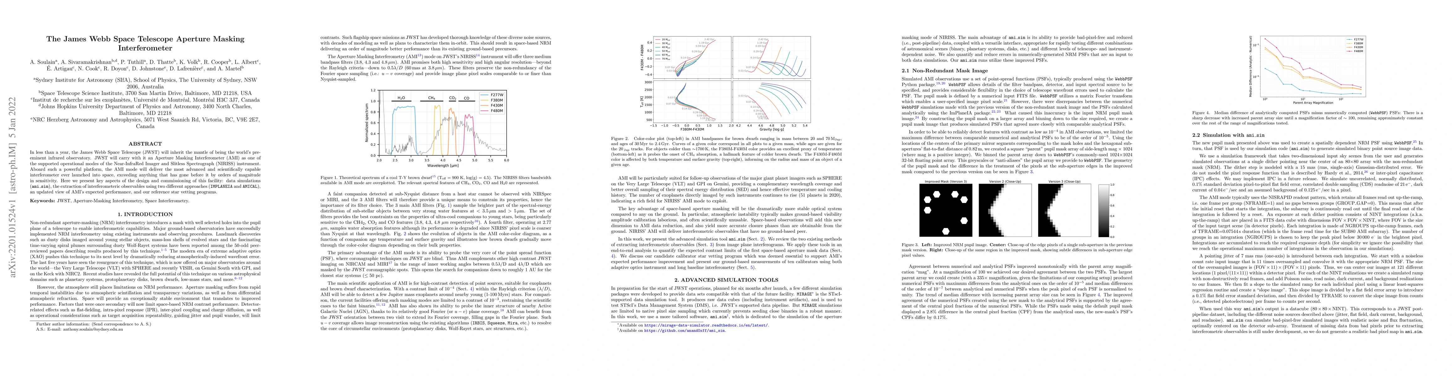 The James Webb Space Telescope (JWST) will feature an Aperture Masking Interferometer (AMI) on its NIRISS instrument, promising unprecedented sensitivity and advanced interferometric capabilities. This paper outlines the design, commissioning, and performance expectations of the AMI, including data simulations and extraction methods.