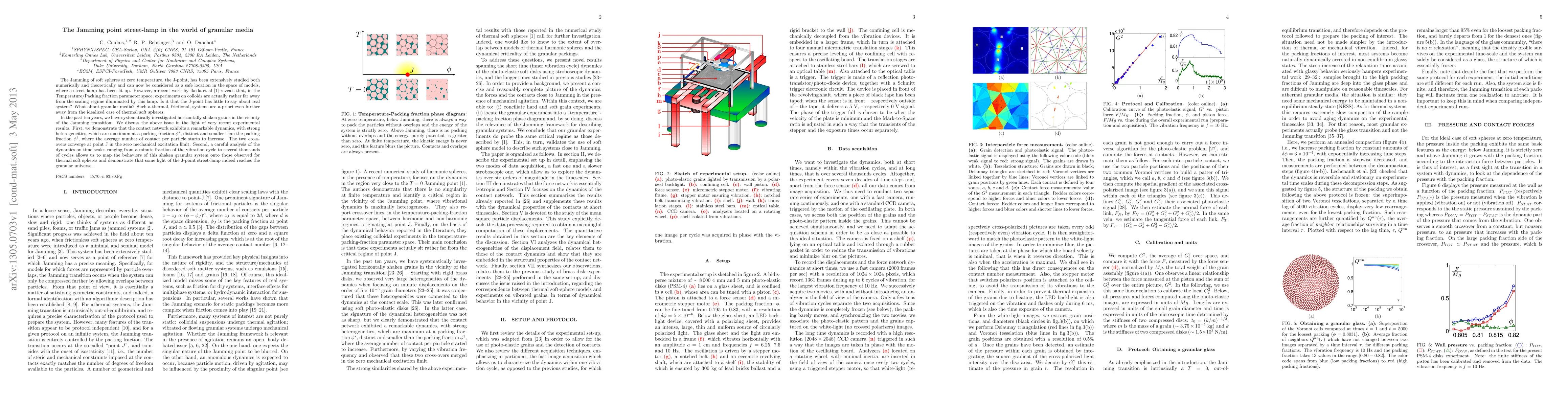 The Jamming of soft spheres at zero temperature, the J-point, has been extensively studied both numerically and theoretically and can now be considered as a safe location in the space of models, where a street lamp has been lit up. However, a recent work by Ikeda et al, 2013 reveals that, in the Temperature/Packing fraction parameter space, experiments on colloids are actually rather far away from the scaling regime illuminated by this lamp. Is it that the J-point has little to say about real system? What about granular media? Such a-thermal, frictional, systems are a-priori even further away from the idealized case of thermal soft spheres. In the past ten years, we have systematically investigated horizontally shaken grains in the vicinity of the Jamming transition. We discuss the above issue in the light of very recent experimental results. First, we demonstrate that the contact network exhibits a remarkable dynamics, with strong heterogeneities, which are maximum at a packing fraction phi star, distinct and smaller than the packing fraction phi dagger, where the average number of contact per particle starts to increase. The two cross-overs converge at point J in the zero mechanical excitation limit. Second, a careful analysis of the dynamics on time scales ranging from a minute fraction of the vibration cycle to several thousands of cycles allows us to map the behaviors of this shaken granular system onto those observed for thermal soft spheres and demonstrate that some light of the J-point street-lamp indeed reaches the granular universe.