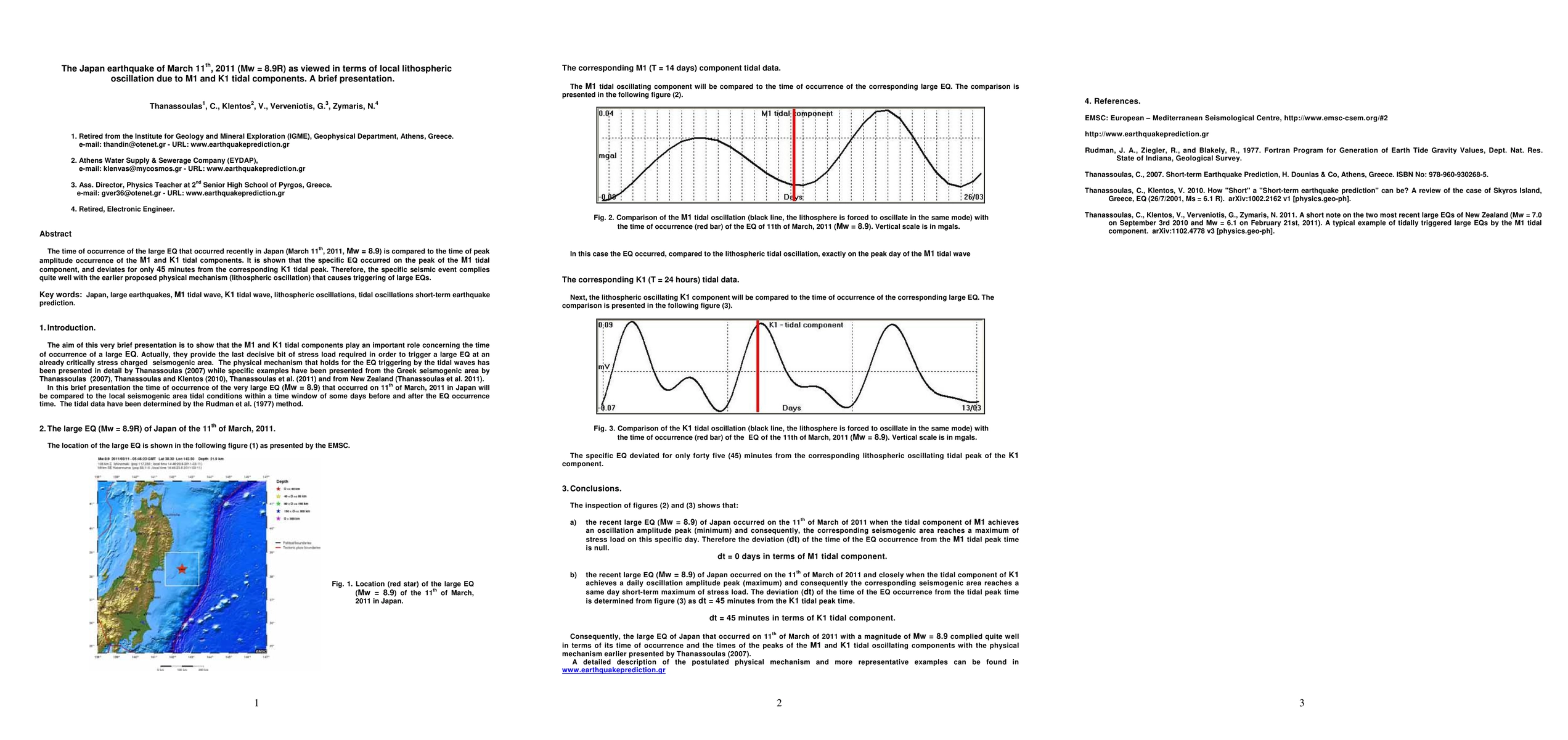 The Japan earthquake of 2011 occurred near the peak of the M1 tidal component, supporting a proposed mechanism of lithospheric oscillation that triggers large earthquakes.