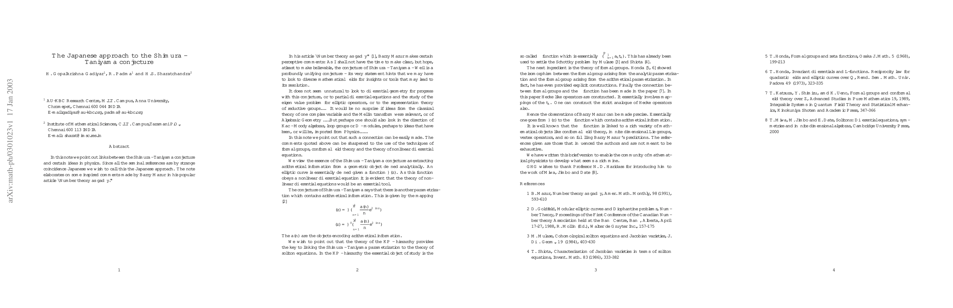 In this note we point out links between the Shimura - Taniyama conjecture and certain ideas in physics. Since all the seminal references are by strange coincidence Japanese we wish to call this the Japanese approach. The note elaborates on some inspired comments made by Barry Mazur in his popular article "Number theory as gadfly."