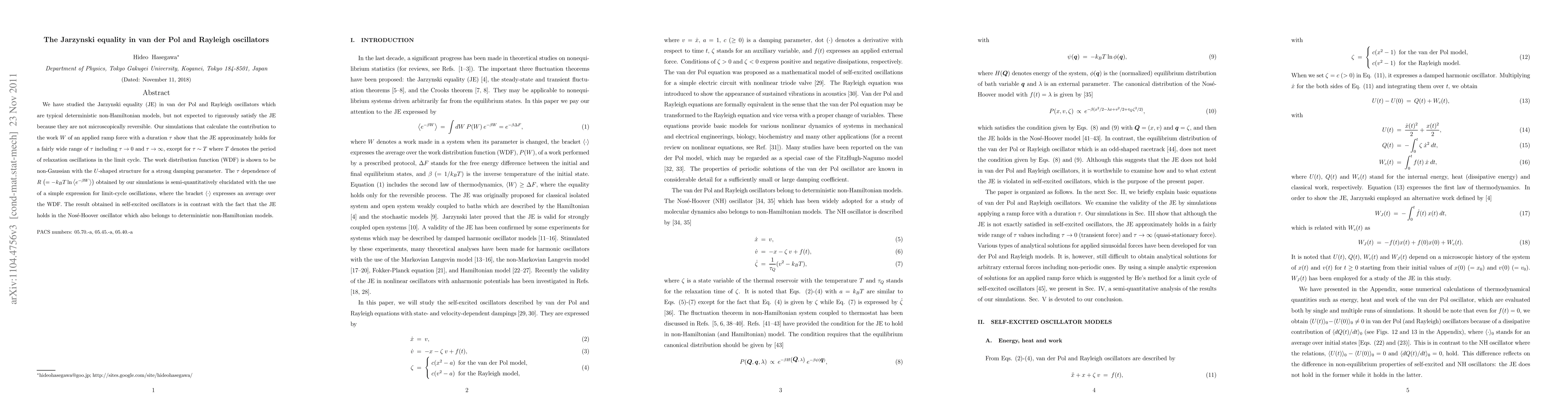 We have studied the Jarzynski equality (JE) in van der Pol and Rayleigh