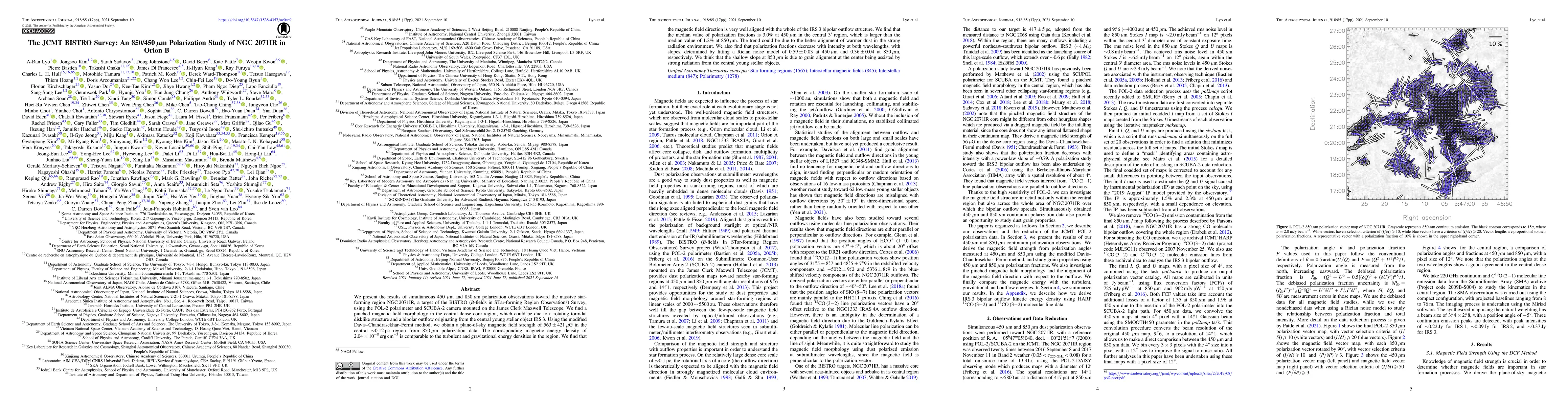The JCMT BISTRO Survey reveals a pinched magnetic field morphology in NGC 2071IR, likely due to a rotating toroidal disk and a bipolar outflow from IRS 3. The magnetic field strength is estimated at 563$\pm$421 $\mu$G, with energy density comparable to turbulent and gravitational densities.