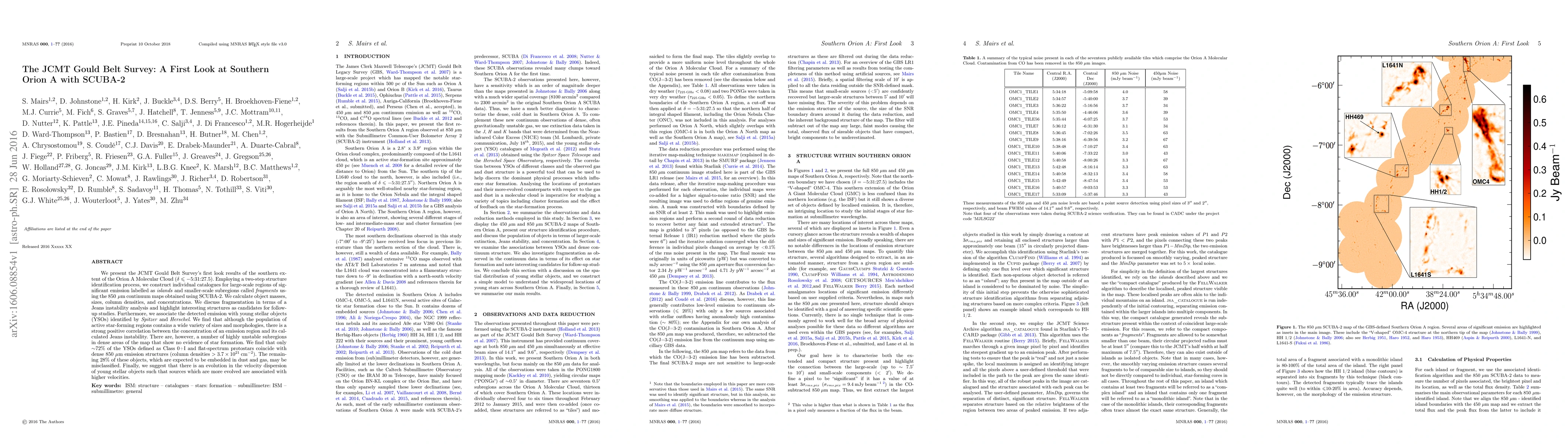 The JCMT Gould Belt Survey reveals the southern Orion A Molecular Cloud using SCUBA-2, identifying emission regions and analyzing their masses and instabilities. While most young stellar objects correlate with dense emission, some highly unstable regions lack star formation, suggesting potential misclassifications and an evolution in stellar object velocities.