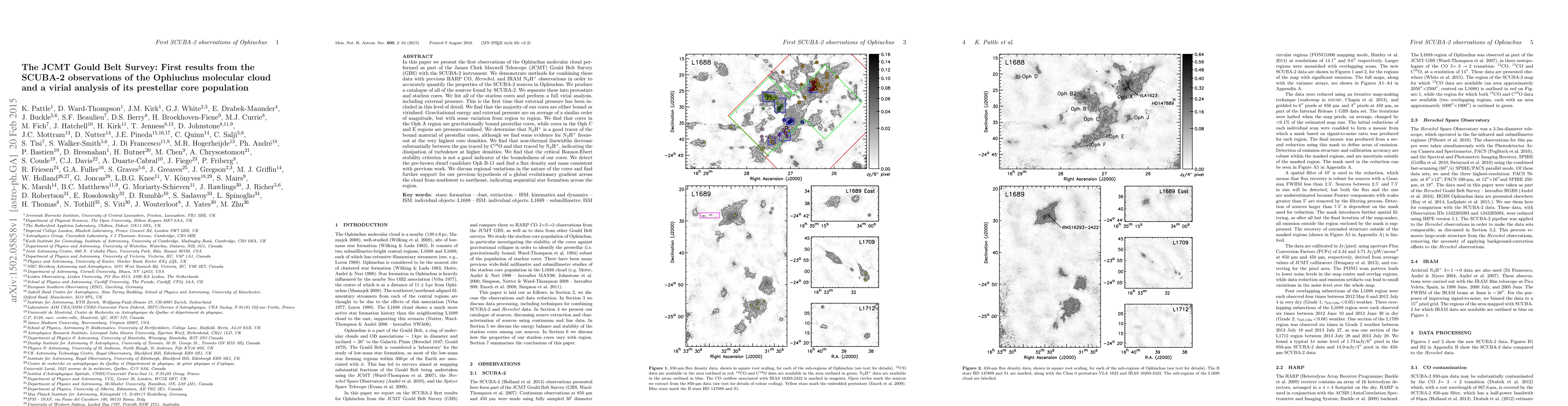 This paper presents initial findings from the JCMT Gould Belt Survey in the Ophiuchus molecular cloud using SCUBA-2, combining these with previous CO, Herschel, and N$_{2}$H$^{+}$ data. It finds most prestellar cores are bound or virialised, with N$_{2}$H$^{+}$ serving as a good tracer for bound material, and supports a global evolutionary gradient indicating sequential star formation from southwest to northeast.