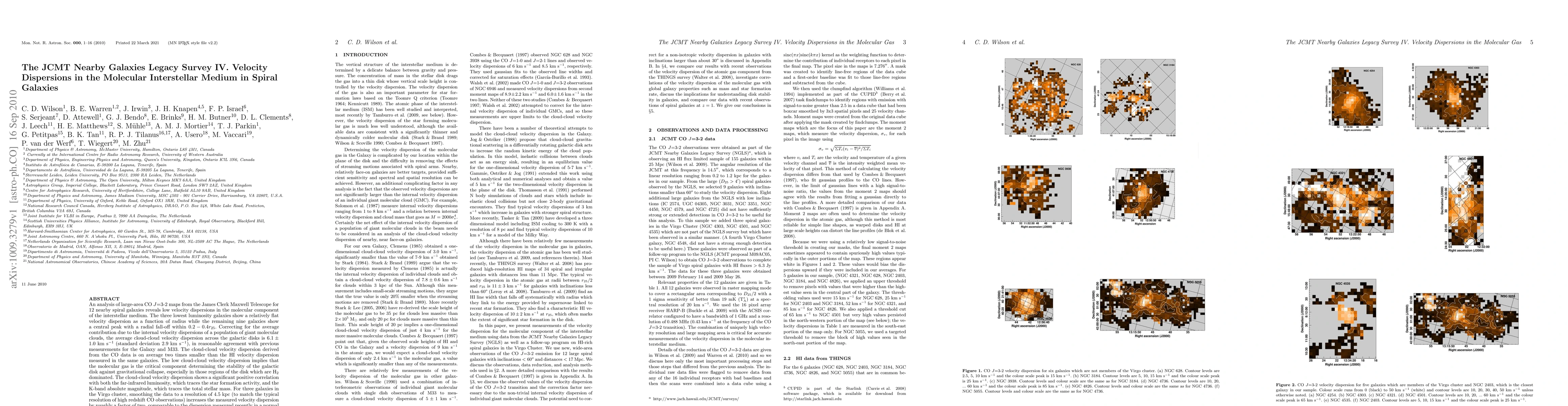 This study analyzes CO J=3-2 maps from the JCMT for 12 nearby spiral galaxies, revealing low molecular gas velocity dispersions, averaging 6.1 +/- 1.0 km/s. The low dispersion suggests molecular gas stabilizes galactic disks against gravitational collapse, especially in H2-dominated regions.
