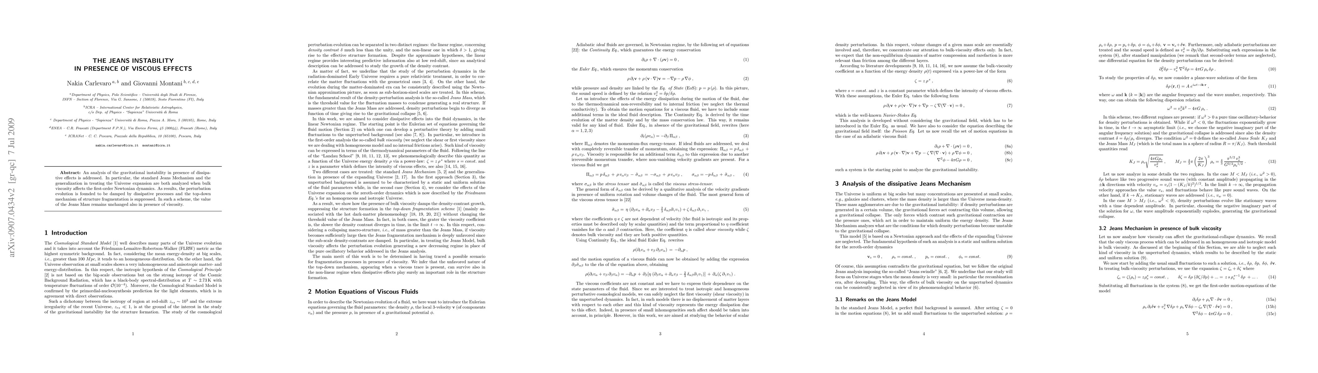 This paper investigates the Jeans instability under the influence of bulk viscosity, finding that dissipative processes dampen perturbation evolution and suppress structure fragmentation, while the Jeans Mass remains unaffected.