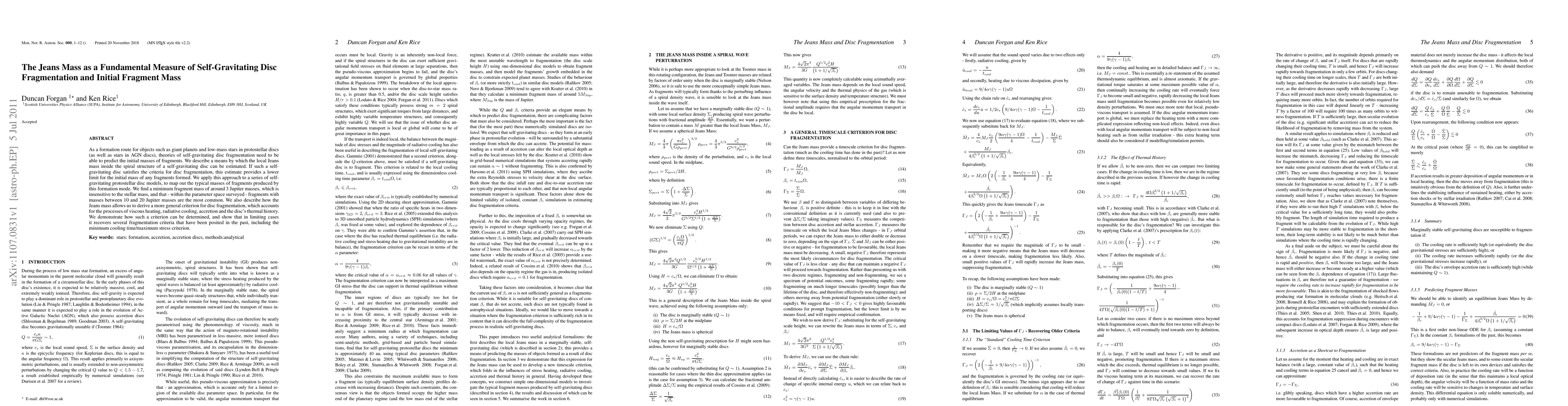 As a formation route for objects such as giant planets and low-mass stars in protostellar discs (as well as stars in AGN discs), theories of self-gravitating disc fragmentation need to be able to predict the initial masses of fragments. We describe a means by which the local Jeans mass inside the spiral structure of a self-gravitating disc can be estimated. If such a self-gravitating disc satisfies the criteria for disc fragmentation, this estimate provides a lower limit for the initial mass of any fragments formed. We apply this approach to a series of self-gravitating protostellar disc models, to map out the typical masses of fragments produced by this formation mode. We find a minimum fragment mass of around 3 Jupiter masses, which is insensitive to the stellar mass, and that - within the parameter space surveyed - fragments with masses between 10 and 20 Jupiter masses are the most common. We also describe how the Jeans mass allows us to derive a more general criterion for disc fragmentation, which accounts for the processes of viscous heating, radiative cooling, accretion and the disc's thermal history. We demonstrate how such a criterion can be determined, and show that in limiting cases it recovers several fragmentation criteria that have been posited in the past, including the minimum cooling time/maximum stress criterion.