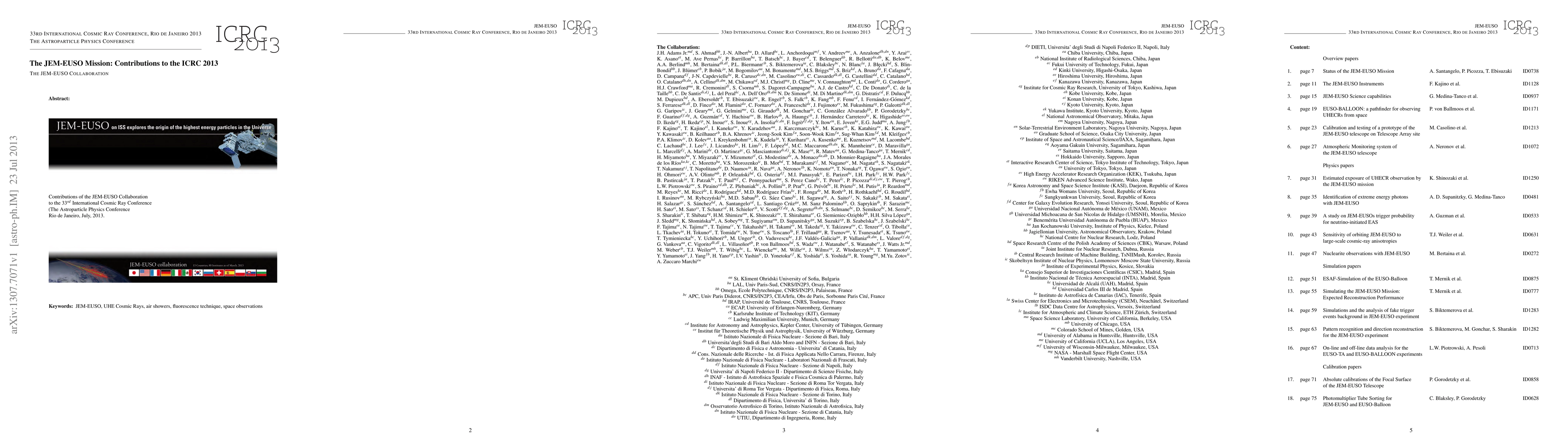 The JEM-EUSO Collaboration presented key findings on cosmic ray detection at the ICRC 2013 conference, highlighting advancements in particle identification and energy estimation. The research contributes to our understanding of high-energy phenomena in space.