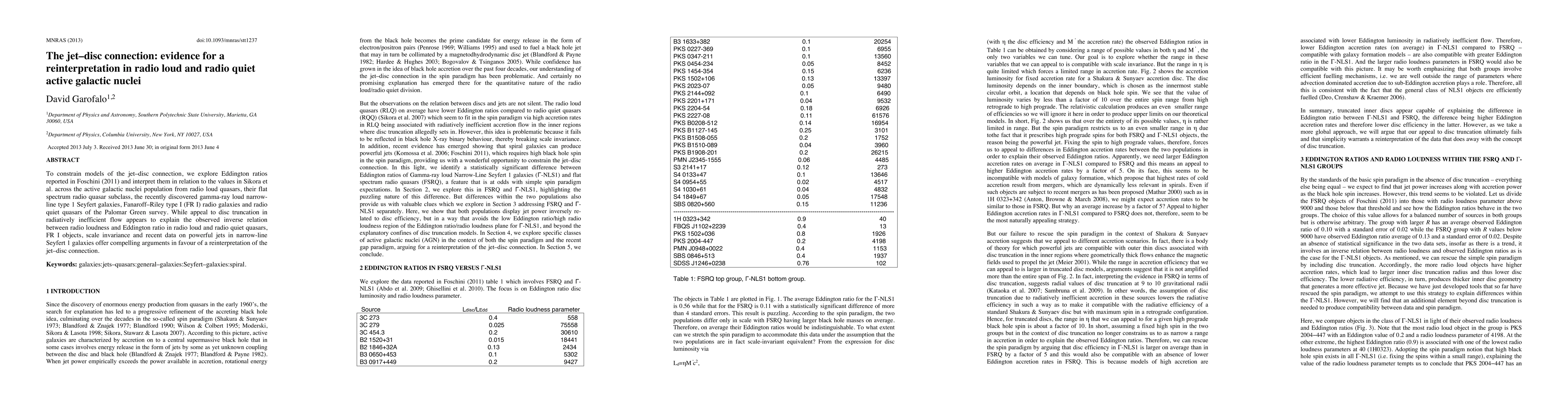 This paper examines the jet-disc connection in various active galactic nuclei, suggesting that disc truncation may explain the inverse relation between radio loudness and Eddington ratio, but new data on powerful jets in narrow-line Seyfert 1 galaxies call for a reinterpretation of this connection.