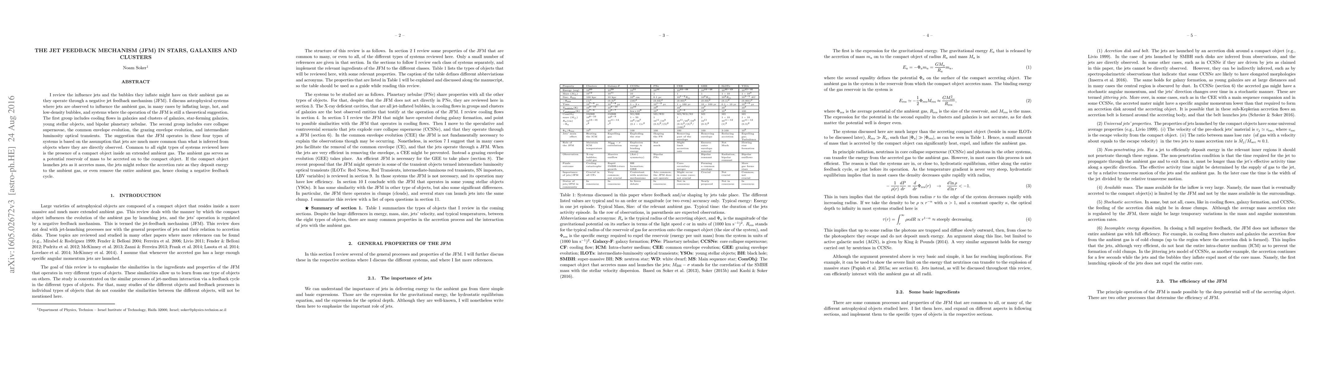 This paper reviews the negative jet feedback mechanism (JFM) in various astrophysical systems, where jets inflate large, hot bubbles, potentially reducing accretion rates onto compact objects. Systems discussed include galaxies, clusters, and stellar objects, with some suggesting the JFM's operation based on inferred jet commonality.